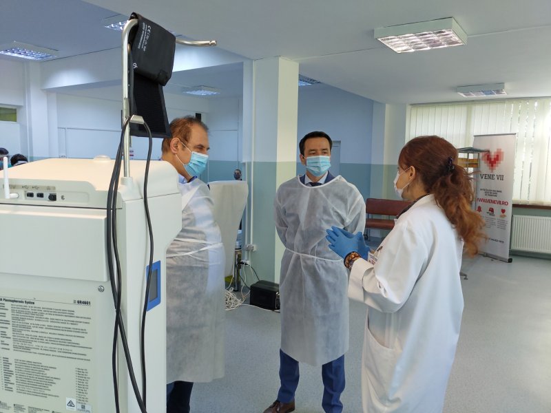Prefectul județului Argeș, Emanuel Soare și directorul DSP Argeș, Alexandru Guiță, au fost azi la Centrul de Transfuzie Sanguină din Pitești, unde este pus în funcțiune aparatul de plasmafereză, folosit pentru tratarea celor infectați cu virusul COVID-19, printr-un tratament inovator. Pe 15 aprilie a fost încheiat un protocol între DSP Argeş şi firma Besmax Pharma, prin care a fost pus la dispoziţie, cu titlu gratuit pentru un an, Centrului de Transfuzie Sanguină din Piteşti un echipament nou de plasmafereză. Acesta este folosit la colectarea de plasmă umană şi este însoţit de 100 de kit-uri de colectare plasmă cu scopul de a se asigura accesul pacienţilor infectaţi cu COVID-19 la tratamentul cu plasmă umană hiperimună colectată de la convalescenţi. Prefectul Emanuel Soare și șeful DSP Argeș s-au implicat pentru a pune în folosință cât mai repede aparatul, existând deja 63 de argeșeni vindecați de COVID-19, care ar putea contribui la însănătoșirea semenilor lor.