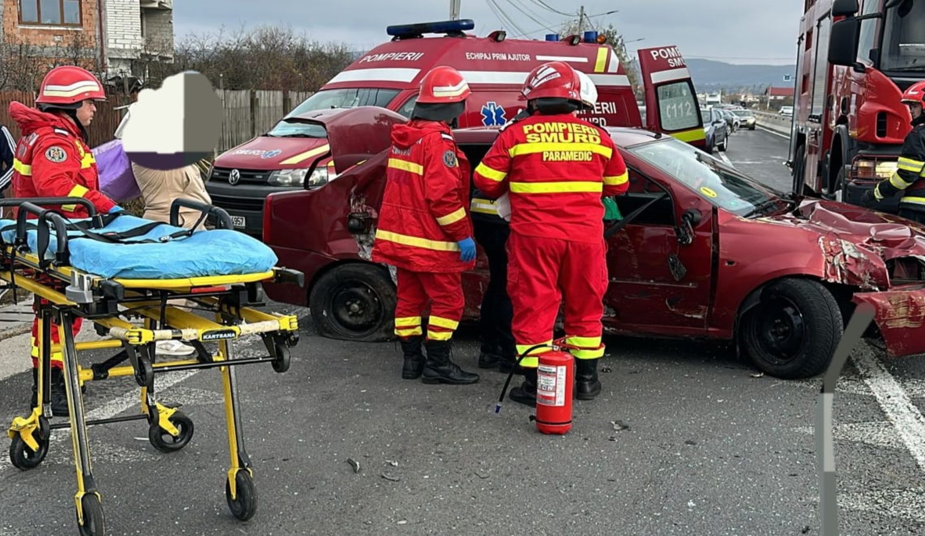 La sosirea echipajelor de pompieri, acestea au identificat în interiorul autoturismului o persoană care nu se putea evacua pe cont propriu.