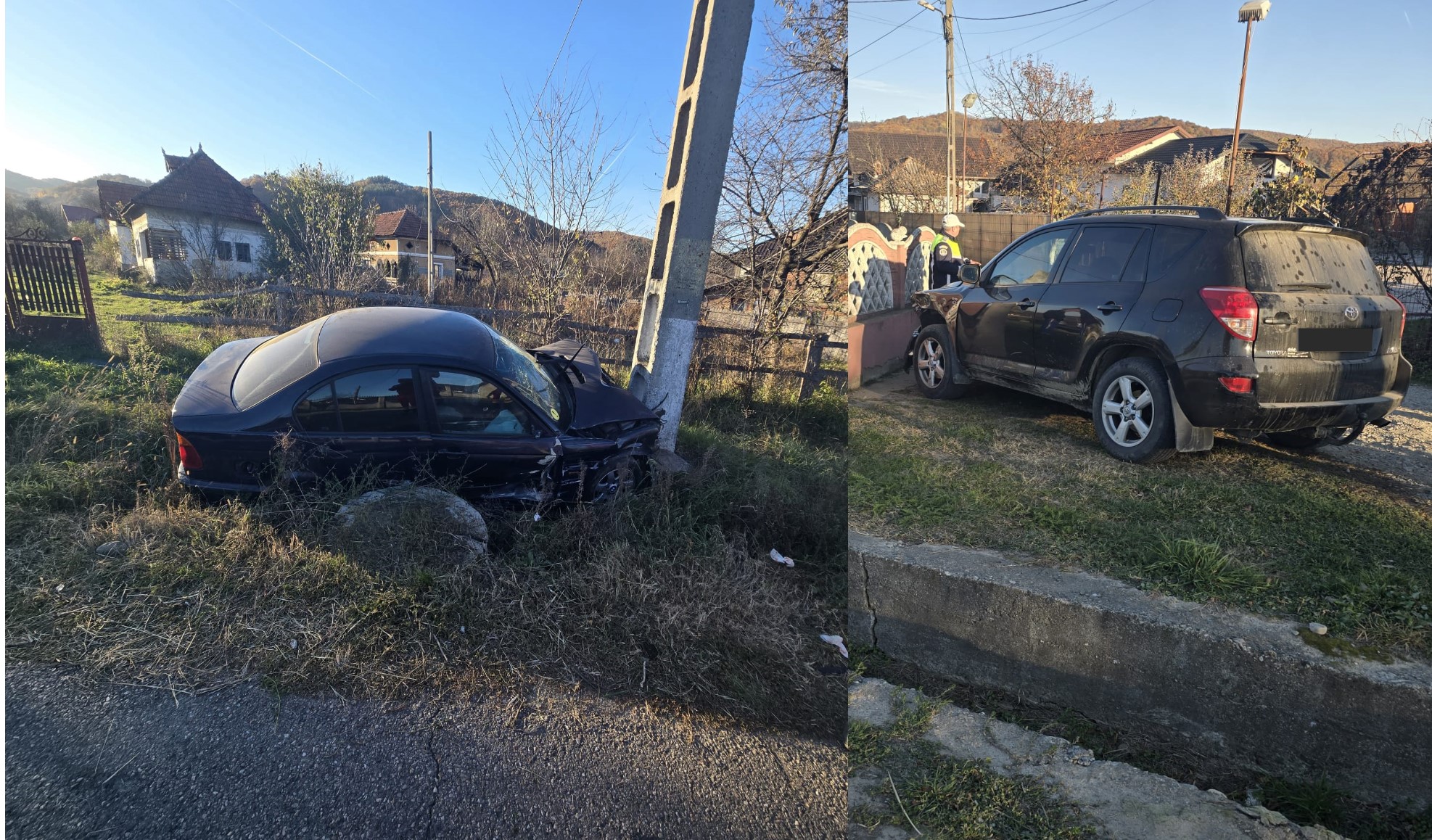 Este vorba despre două autoturisme care au părăsit partea carosabilă, unul dintre acestea lovind un stâlp de electricitate.