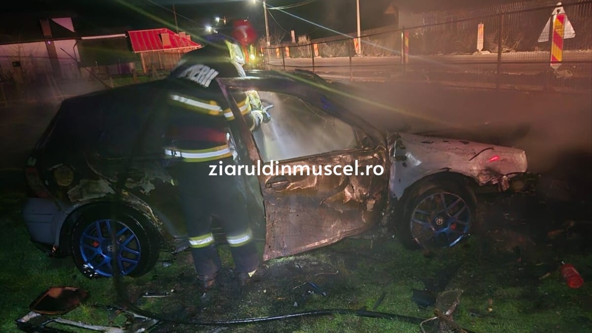 Accident neobișnuit la intrarea în comuna Rucăr din nordul județului Argeș. Un autoturism a părăsit partea carosabilă intrând într-un gard iar apoi a luat foc.