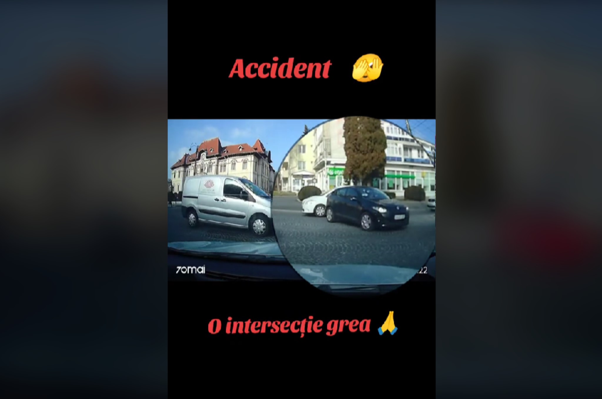 A staționat pentru că, dinspre Bulevard pe Negru Vodă venea o mașină care avea prioritate. Fără să se uite în retrovizoare, a dat cu spatele să facă loc turismului cu prioritate. Numai că, în spate era mașina albă staționată.
