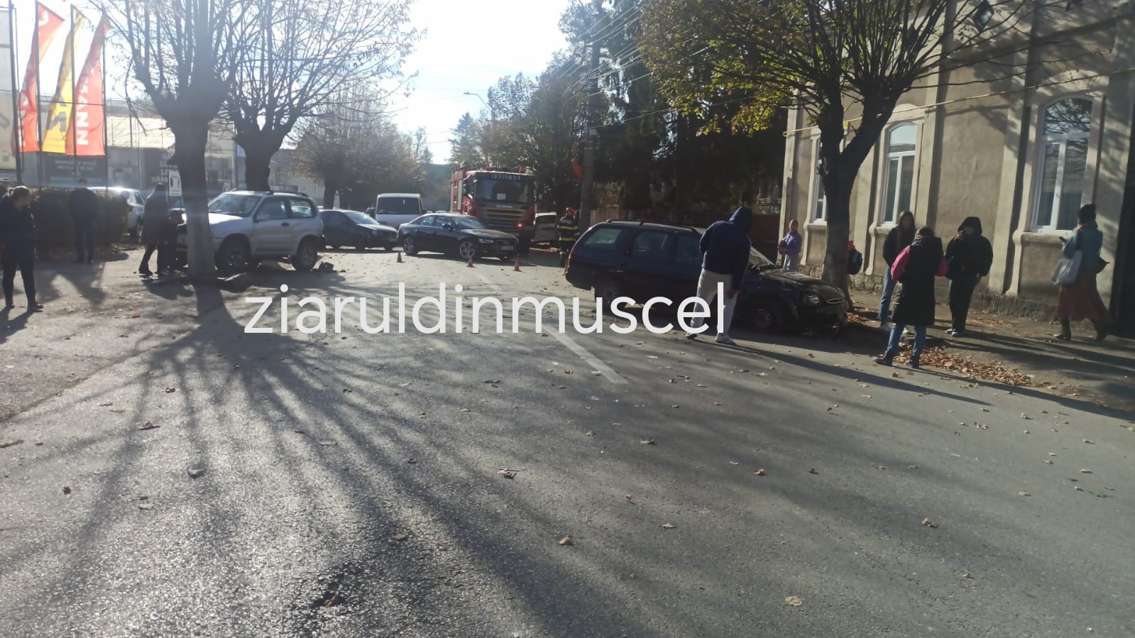Accident rutier în fața magazinului lui Bînă din Câmpulung Muscel. 4 mașini implicate