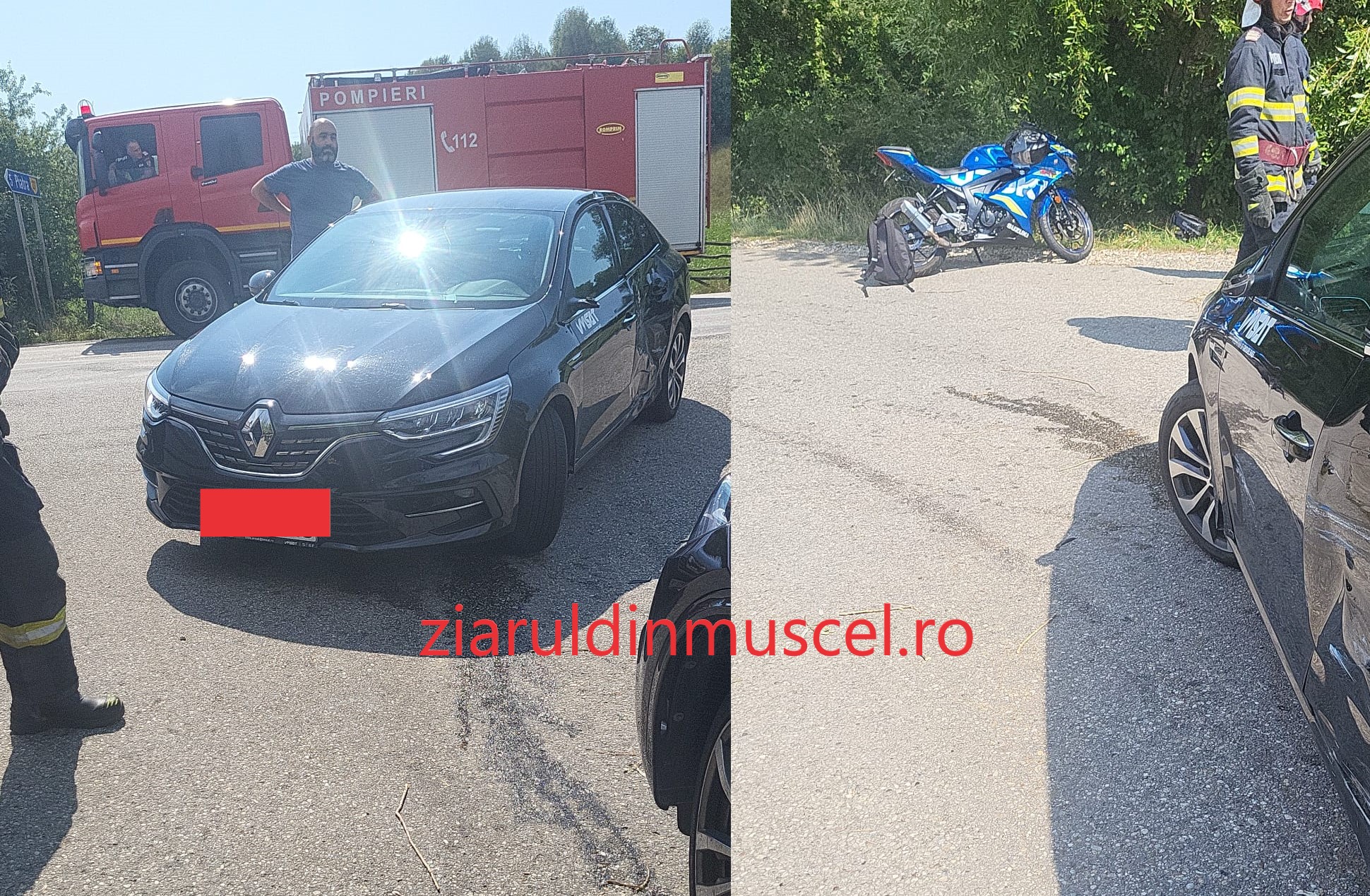 Accident rutier pe raza localității Stoenești, pe drumul național. O mașină și un motor s-au bușit!