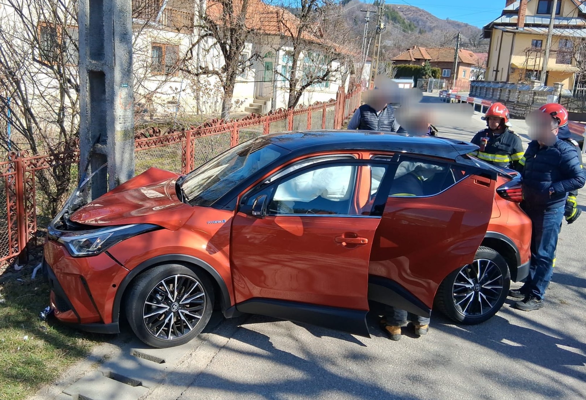 La fața locului au intervenit pompierii de la Detașamentul de Pompieri Câmpulung, care au constatat că vehiculul a ieșit de pe șosea și s-a oprit în stâlpul de electricitate.