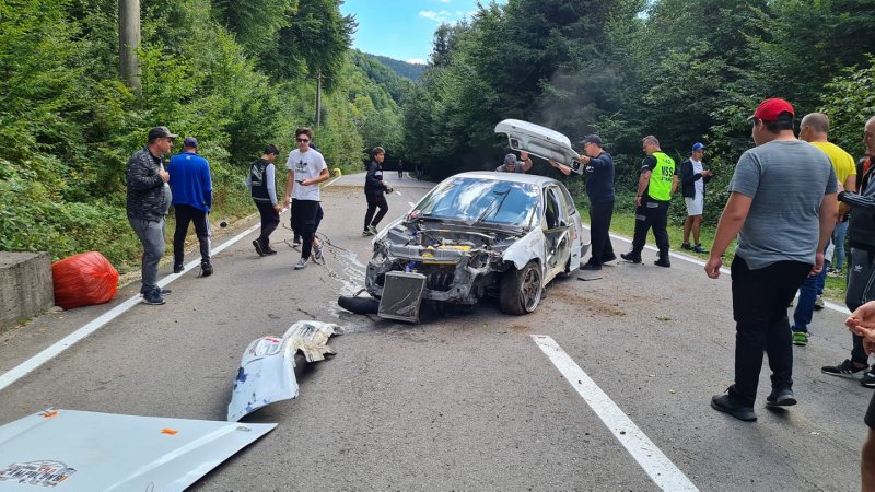 Pilotul Costin Popescu a scăpat cu viața, după ce mașina sa s-a făcut praf.