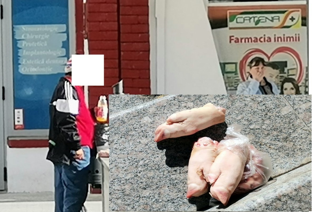 Acum, Mirela şi-a schimbat meniul, ia copite de porc, iar astăzi, le-a şi depozitat la loc sigur, lângă o bordură de lângă farmacia din zonă.
