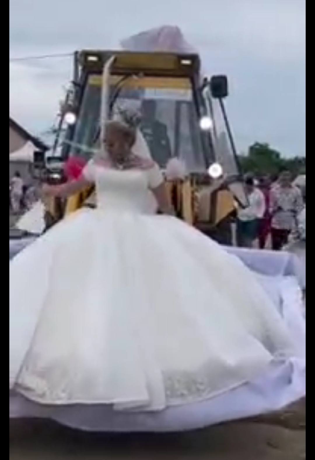 Cele mai multe mirese îşi doresc ca în ziua nunţii să fie plimbate în limuzine luxoase. Nu este şi cazul unei tinere care a fost plimbată în ziua nunţii cu  buldoexcavatorul.