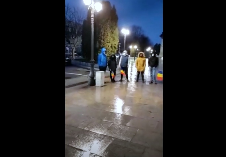 ACUM! Proteste în fața primăriei Câmpulung. Mai bine de 30 de câmpulungeni au ieșit în ploaie pentru a se manifesta împotriva restricțiilor impuse de guvernanți.