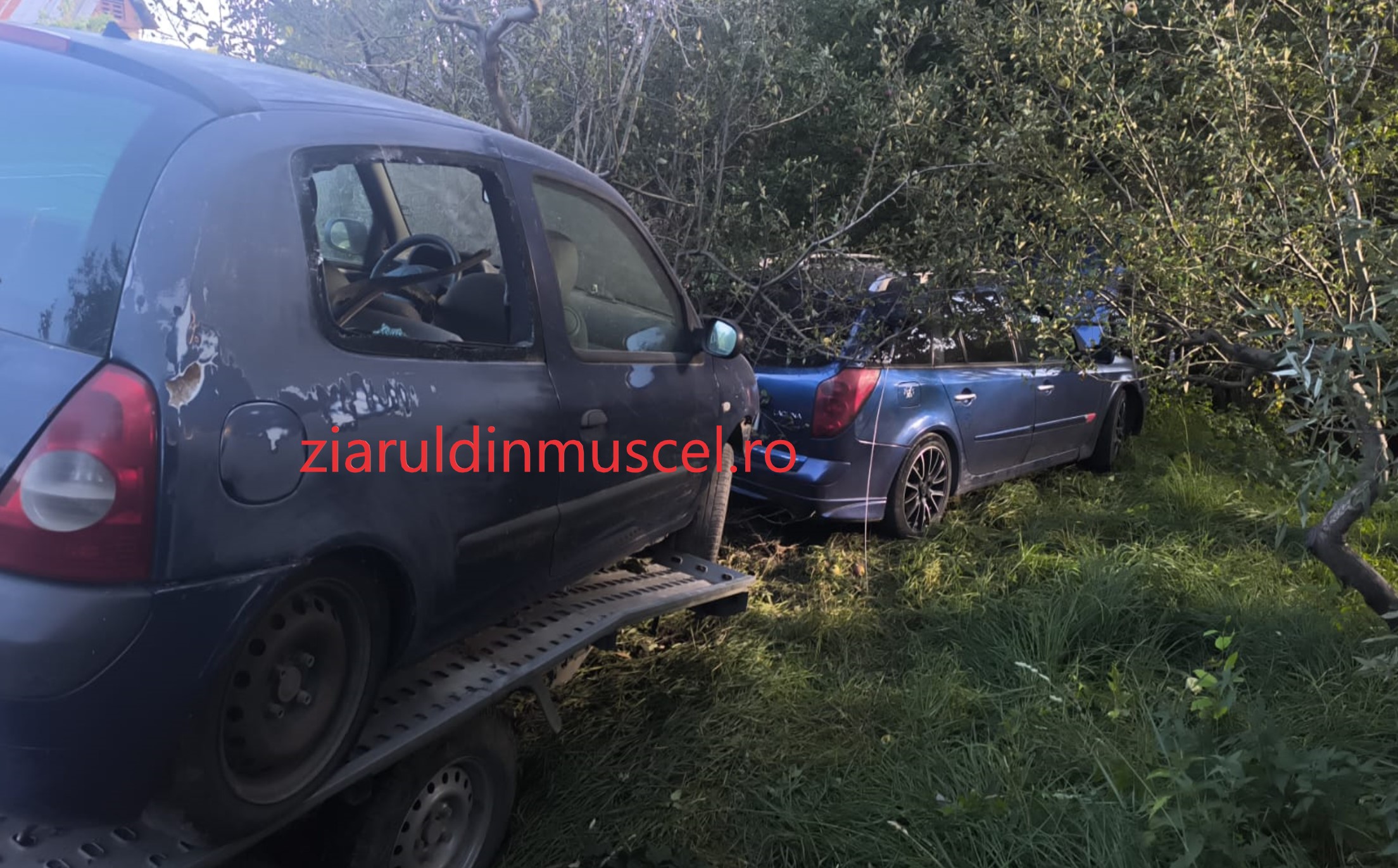 Alarmă pe o șosea din Muscel. Mașină desprinsă de pe o platformă în decor! Un eveniment rutier s-a produs prin comuna Mioarele. Un autoturism marca Renault, care avea atașată o remorcă pe care transporta un alt turism, a ieșit în decor.