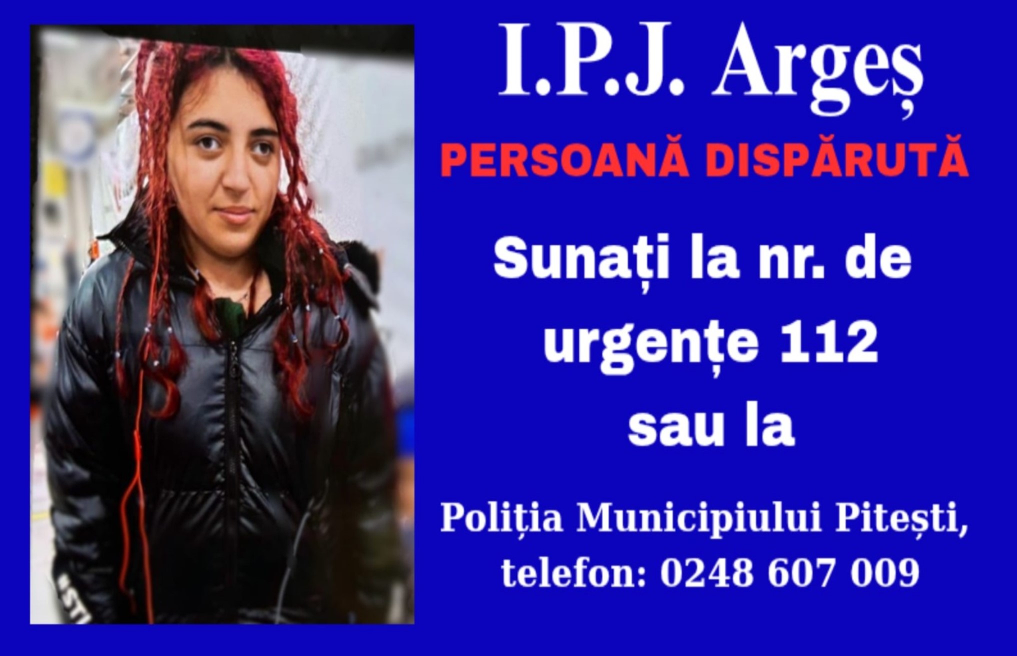 Persoanele care pot oferi informații despre tânăra dispărută sunt rugate să apeleze Serviciul Unic de Urgență 112 sau să contacteze Poliția Municipiului Pitești, la numărul de telefon 0248 607 009.