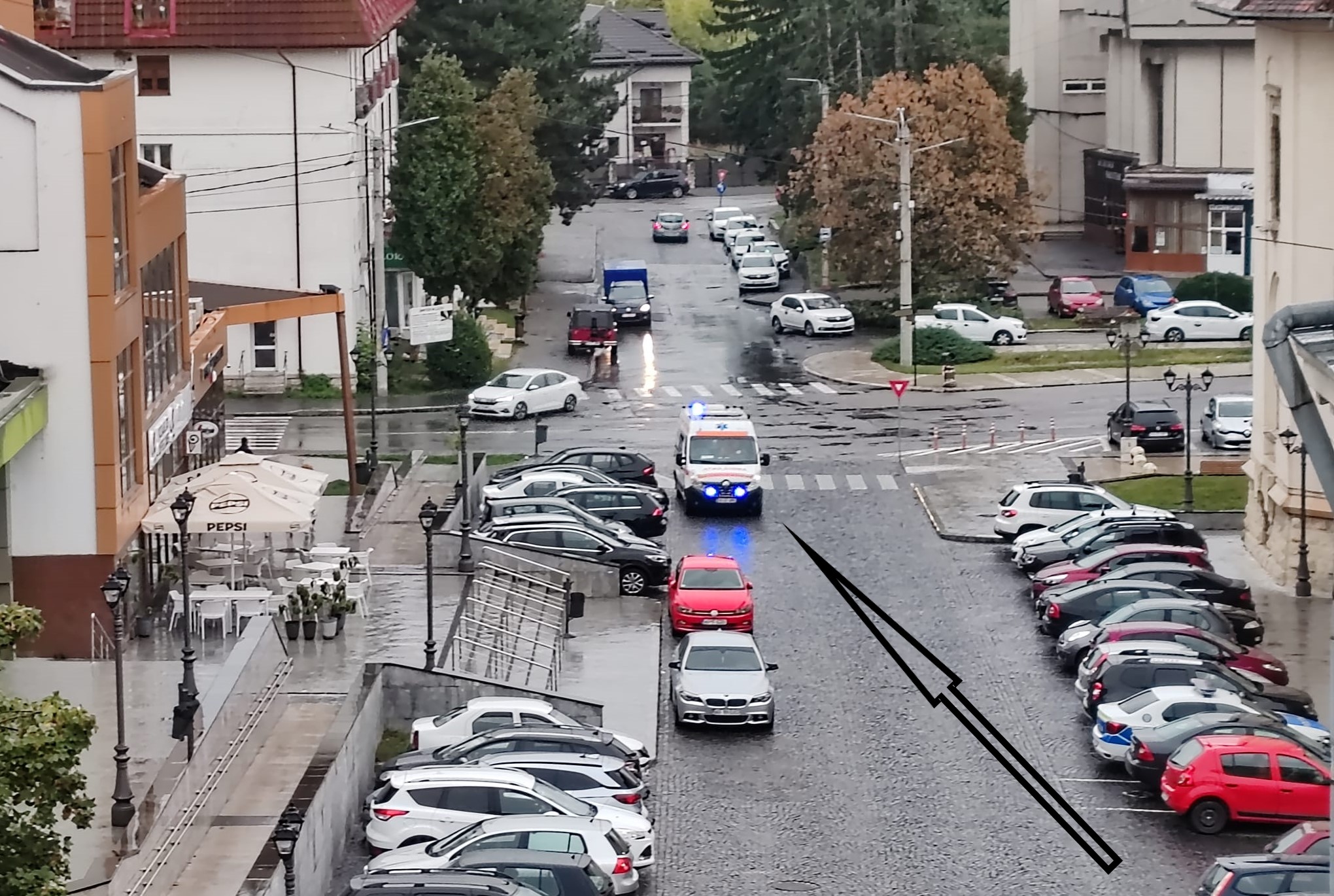 Ambulanța chemată de Urgență lângă primăria Câmpulung Muscel. Panică în centrul orașului, după ce a staționat mai bine de 30 minute!