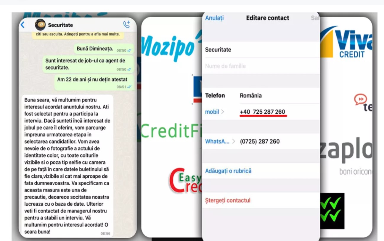 După ce primesc poza cărții de identitate și selfie-ul de la persoanele care doresc să se angajeze, țeparii merg la diferite IFN-uri și solicită împrumuturi online. Evident că ratele vor fi pe numele persoanelor prejudiciate.