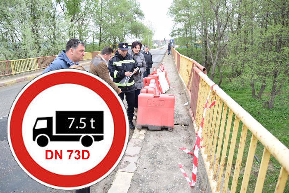 ATENȚIE ȘOFERI! Din cauza avariilor apărute la unele elemente de structură ale podului de peste Râul Doamnei (Cimitir Colibași) și la podul de peste Râul Argeșel (Getica), începând cu data de 15 mai, 2018, va intra în vigoare o restricție temporară a traficului pe DN 73D a vehiculelor cu masă mai mare de 7,5 tone pe următoarele tronsoane de drum: