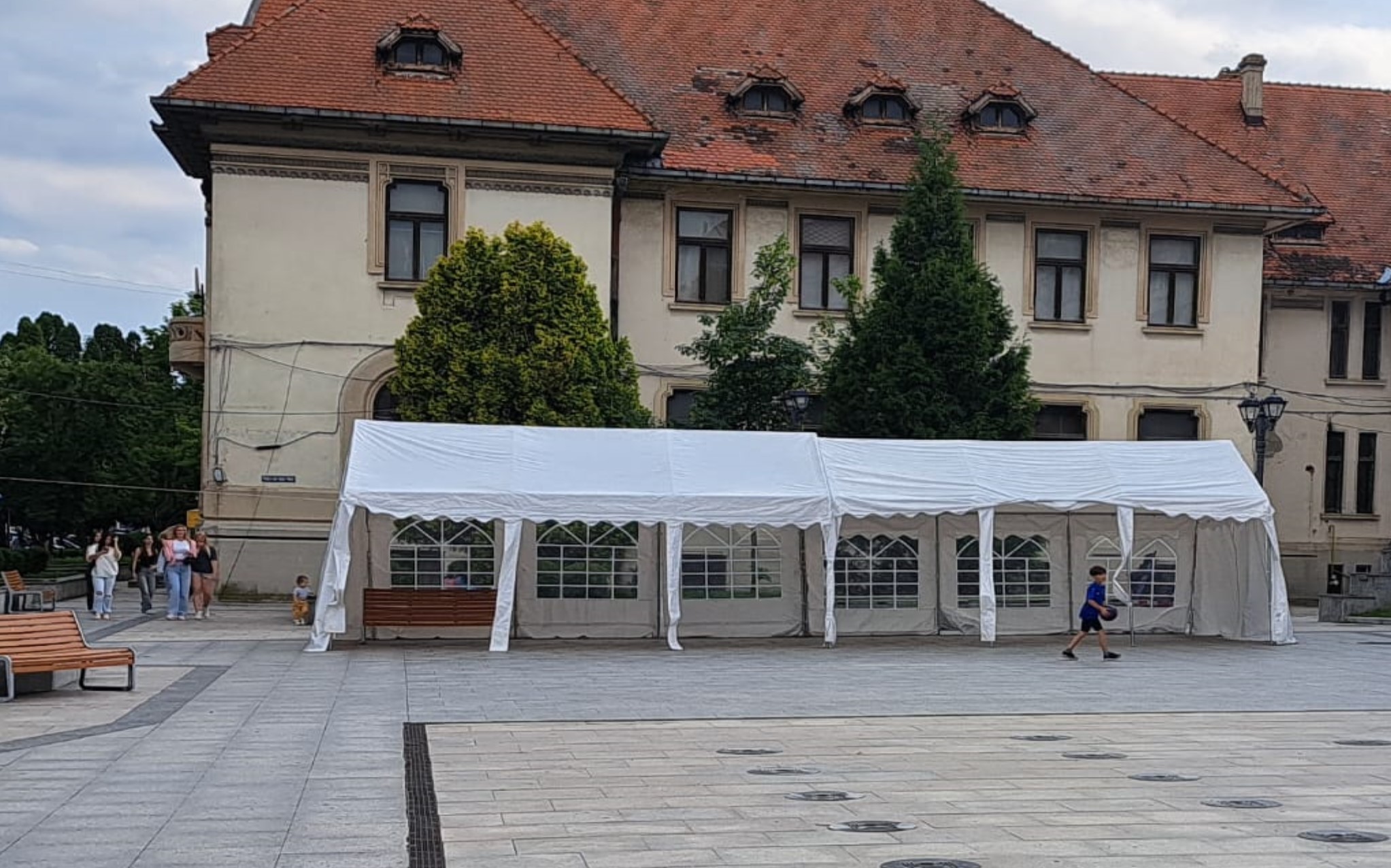 Au apărut corturi albe în piața primăriei Câmpulung. Orașul va fi luat cu asalt! Ce se pune la cale, pe weekend?