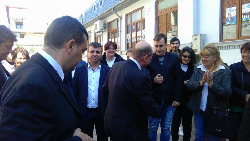 Fostul șef al statului, Traian Băsescu a fost în această dimineață în Pitești. A fost așteptat cu alai de membrii PMP Argeș, în curtea partidului din Pitești, strada Sfânta Vineri. Câteva doamne, când l-au văzut pe fostul președinte și au dat mâna cu ele, au început să lăcrimeze de emoții. Traian Băsescu a venit la Pitești pentru a susține candidații PMP din Argeș la alegerile locale din data de 5 iunie, în special pe Cătălin Bulf, candidat la primăria Pitești, pe care Traian Băsescu l-a lăudat ori de câte ori a avut ocazia.