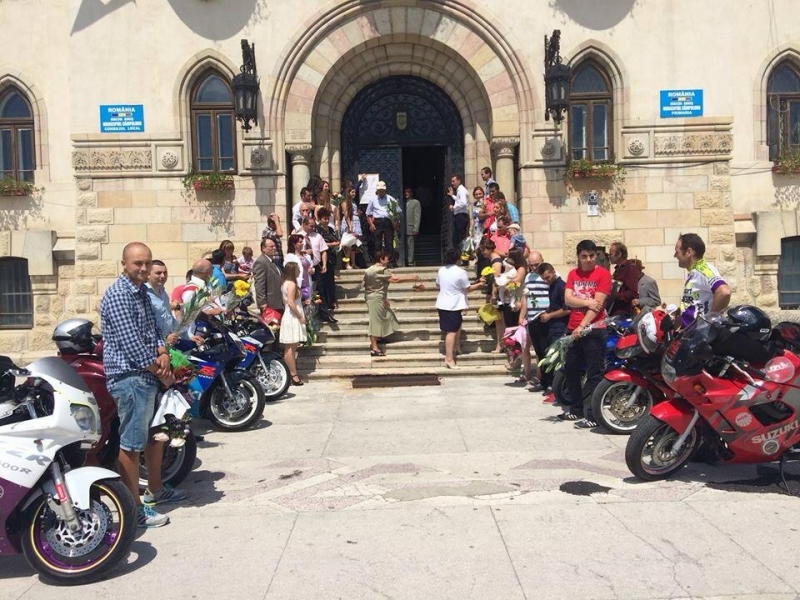 Nuntă cu alai de motociclişti la Câmpulung, judeţul Argeş. Adrian Sebastian Romanescu, pasionat de motoare, a decis să nu lase motocicletele acasă nici măcar în ziua nunţii. S-a îmbrăcat la patru ace şi a plecat către Starea Civilă. Zeci de prieteni, tot pe două roţi, l-au încurajat să facă pasul cel mare într-un mod inedit. În vreme ce unii aleg limuzine, trăsuri sau autoturismele din parcare, Adrian Sebastian Romanescu a decis ca în ziua nunţii lui să se deplaseze cu motocicleta la Starea Civilă. După ce a spus ,,DA” în faţa ofiţerului, Adrian Sebastian Romanescu a fost aşteptat în faţa primăriei de prietenii lui, cu flori pe care i le-a oferit de pe motoare. Tinerii căsătoriţi au plecat de la Starea Civilă, după ei cu un alai de motociclişti, făcând senzaţie prin Câmpulung.