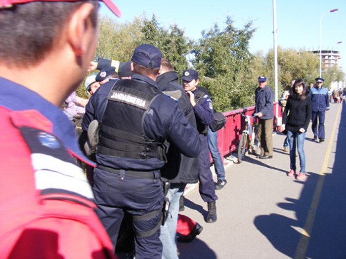 Jandarmii au iniţiat un dialog cu persoana în cauză care a fost, în cele din urmă, imobilizată de către aceştia şi condusă la echipajul SMURD ce se afla la faţa locului.