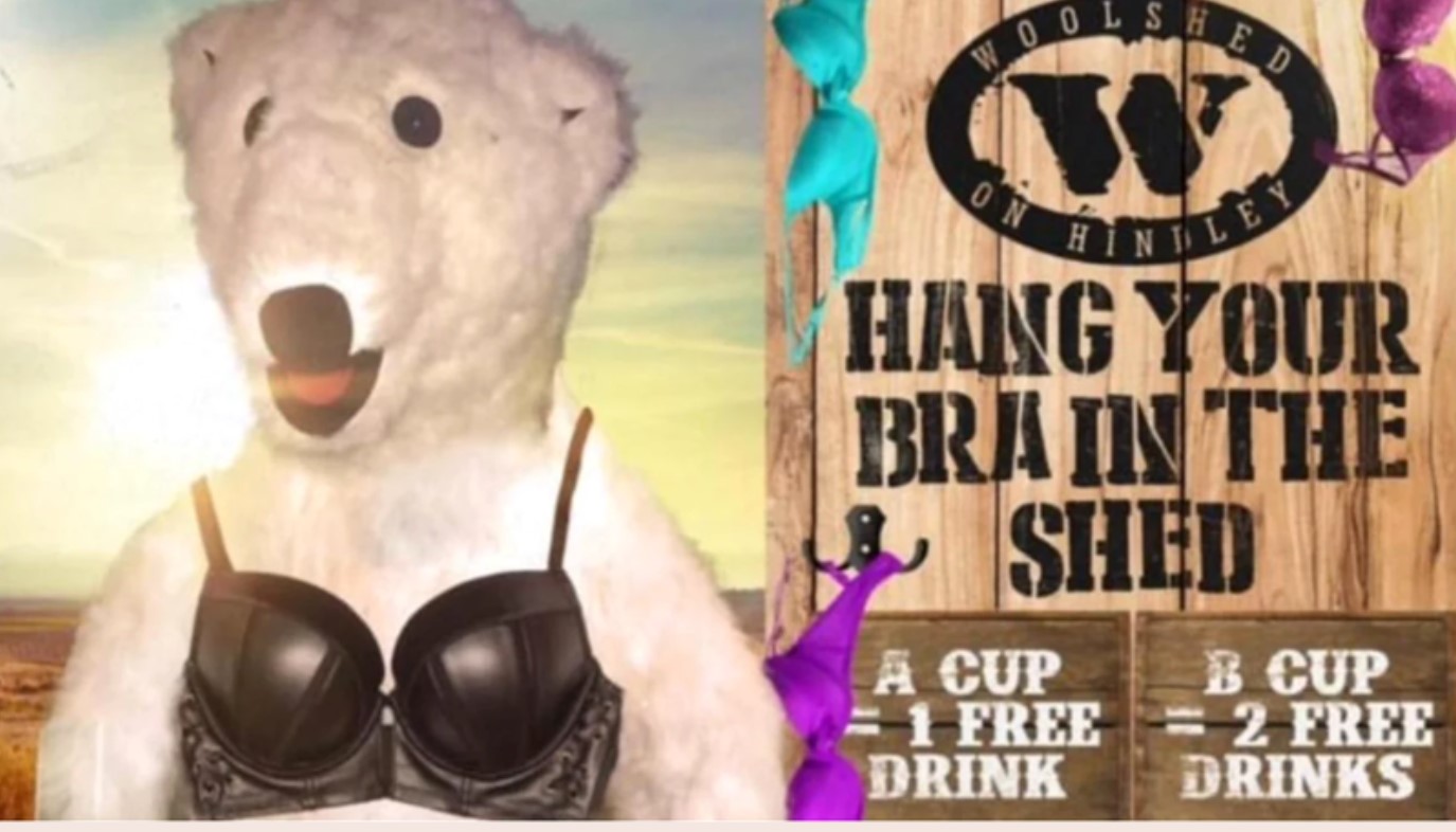 The Woolshed de pe Hindley Street a fost amendat pentru „promovare obscenă” de către autoritatea de reglementare a licențelor pentru băuturi alcoolice de la Consumer and Business Services, potrivit 9news.com.au.