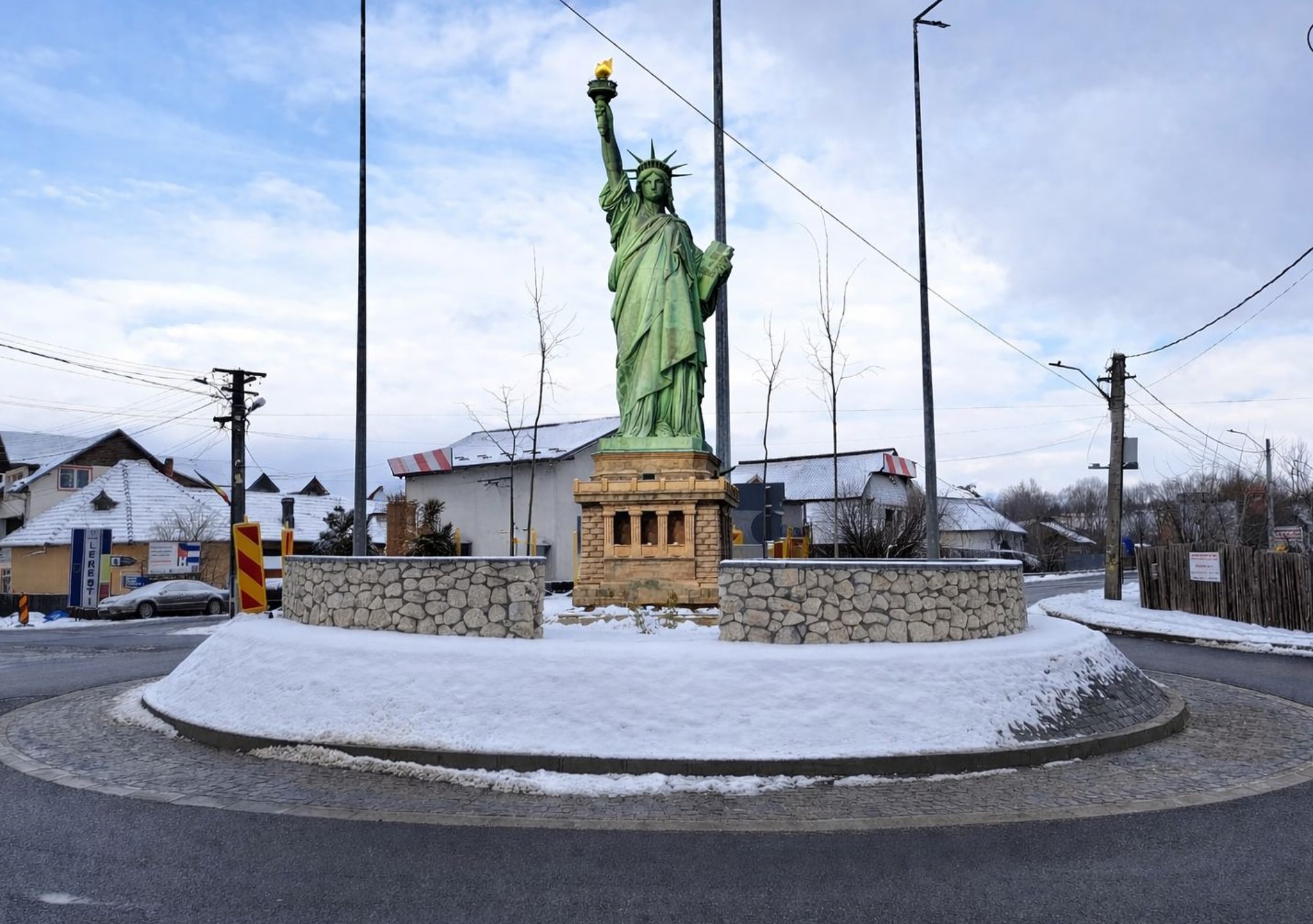 Astfel, pe rețelele sociale a apărut varianta reinterpretată: Statuia Libertății din America, cu celebra torță ridicată, „primind” și ea mesajul de bun-venit. Asta într-o paralelă care sugerează că nu doar Câmpulungul, ci întreaga lume ar fi fost invitată simbolic la giratoriu.
