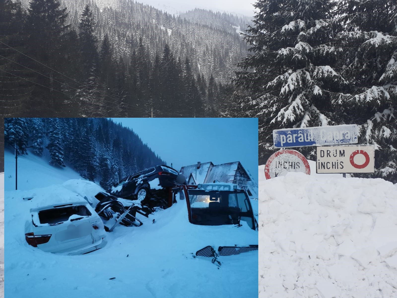 În cursul nopții trecute, pe DN7C, km.106-107, în zona unei cabane, a avut loc o avalanșă de zăpadă, în urma căreia au fost avariate mai multe autoturisme și aproximativ 60 de persoane au rămas izolate la cabană.