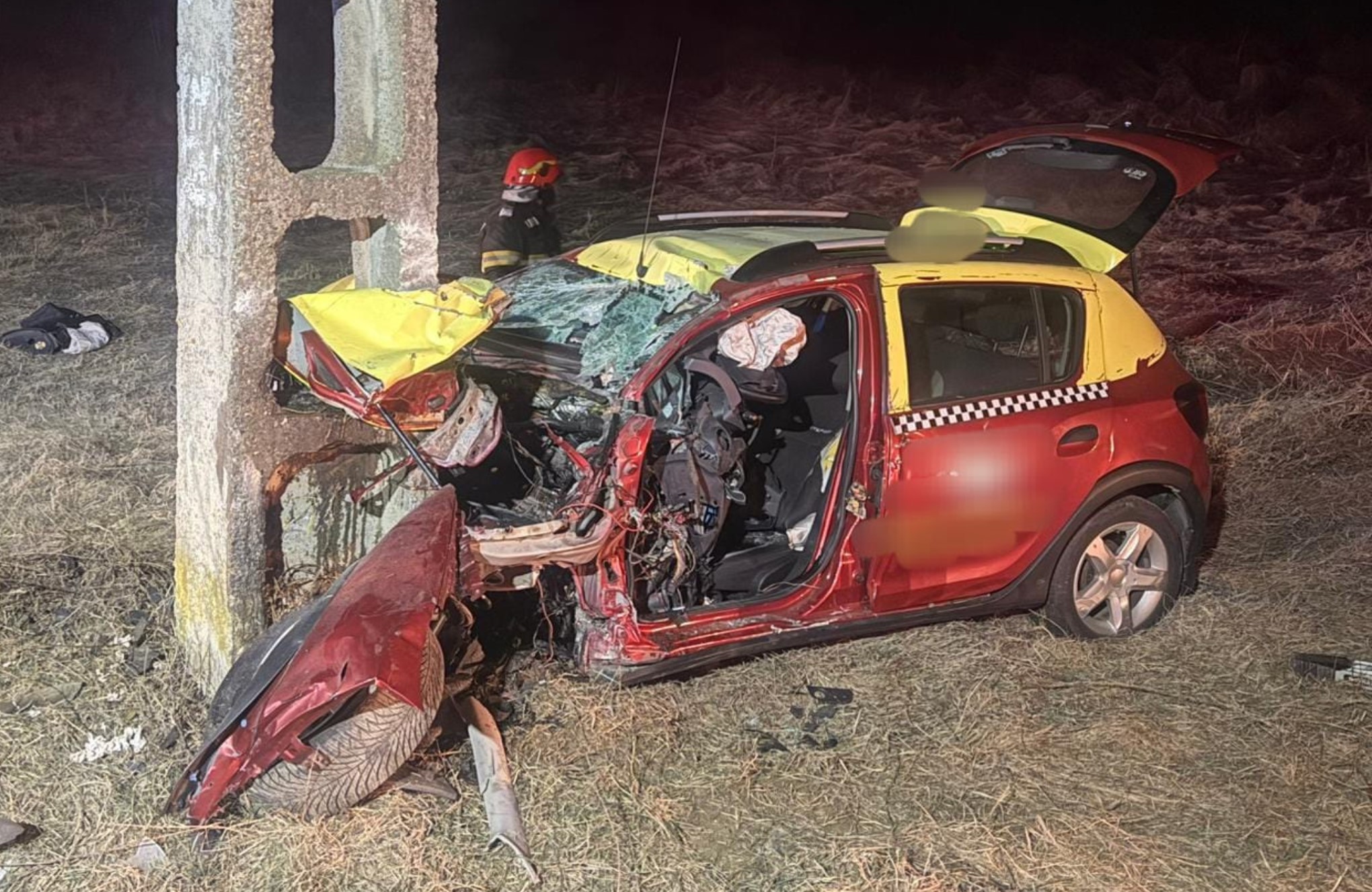 BREAKING. Șofer de taxi găsit decedat după ce a făcut mașina zob, într-un stâlp de electricitate de pe marginea drumului.