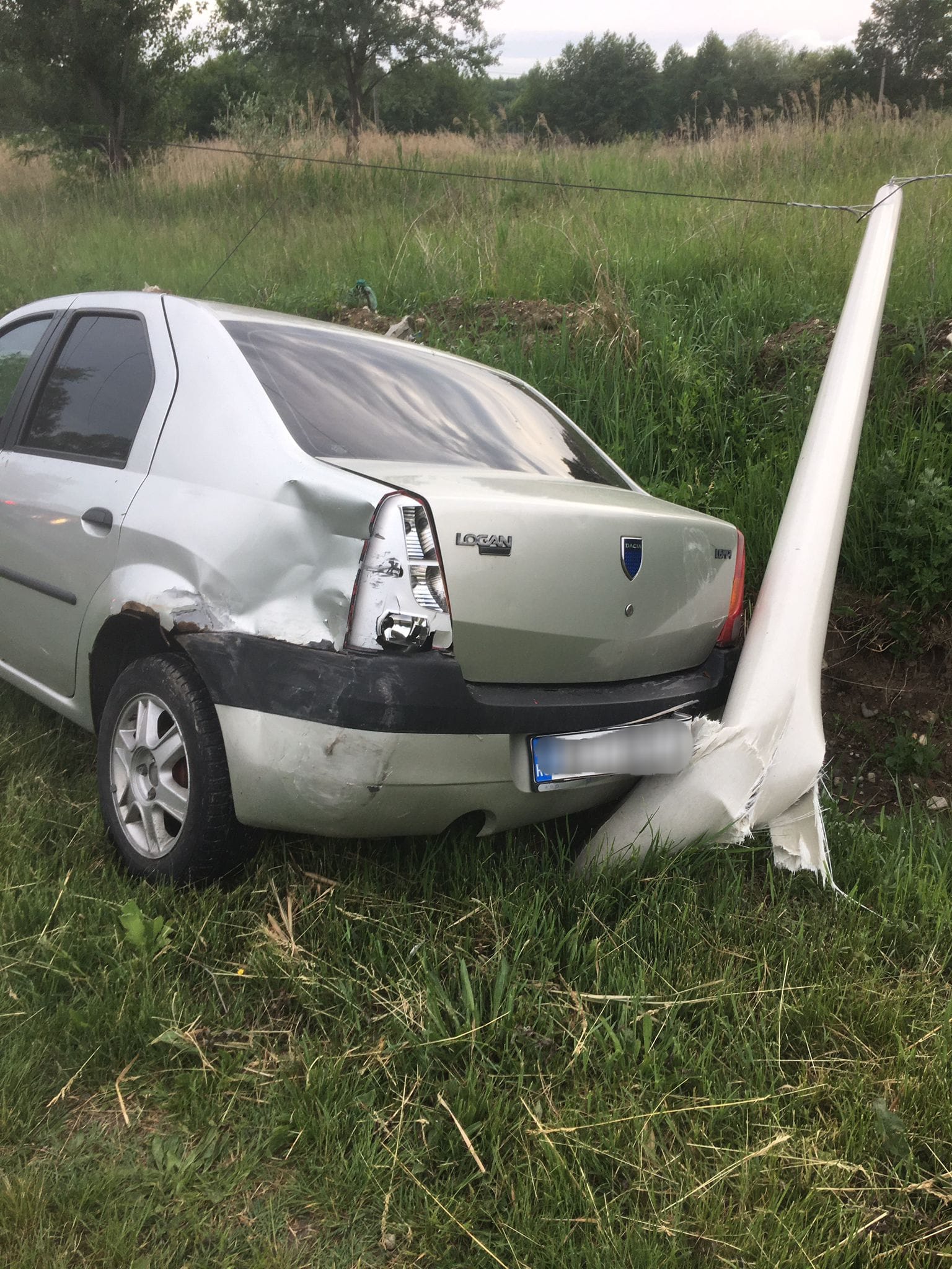 Cabluri TV rupte cu stâlp cu tot de un autoturism în trafic.