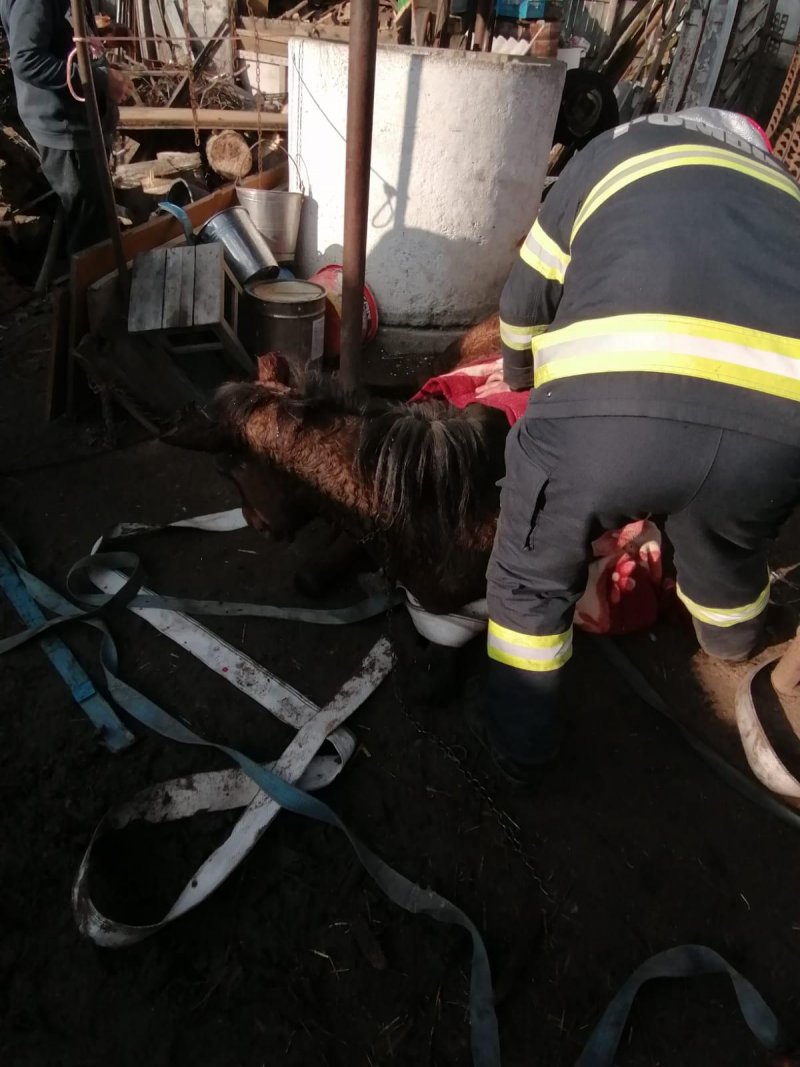 Proprietarul calului încercase să îl scoată, însă fără reuşită, iar calul déjà era epuizat, aşa că singura şansă erau pompierii.