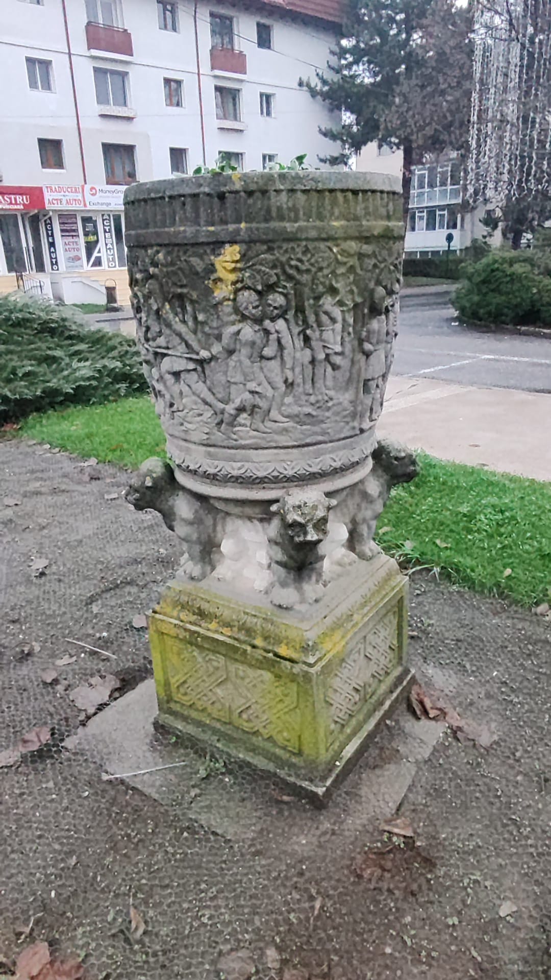 Nu este o urnă funerară, ci una *civic-ornamentală*, tipică spațiilor culturale.