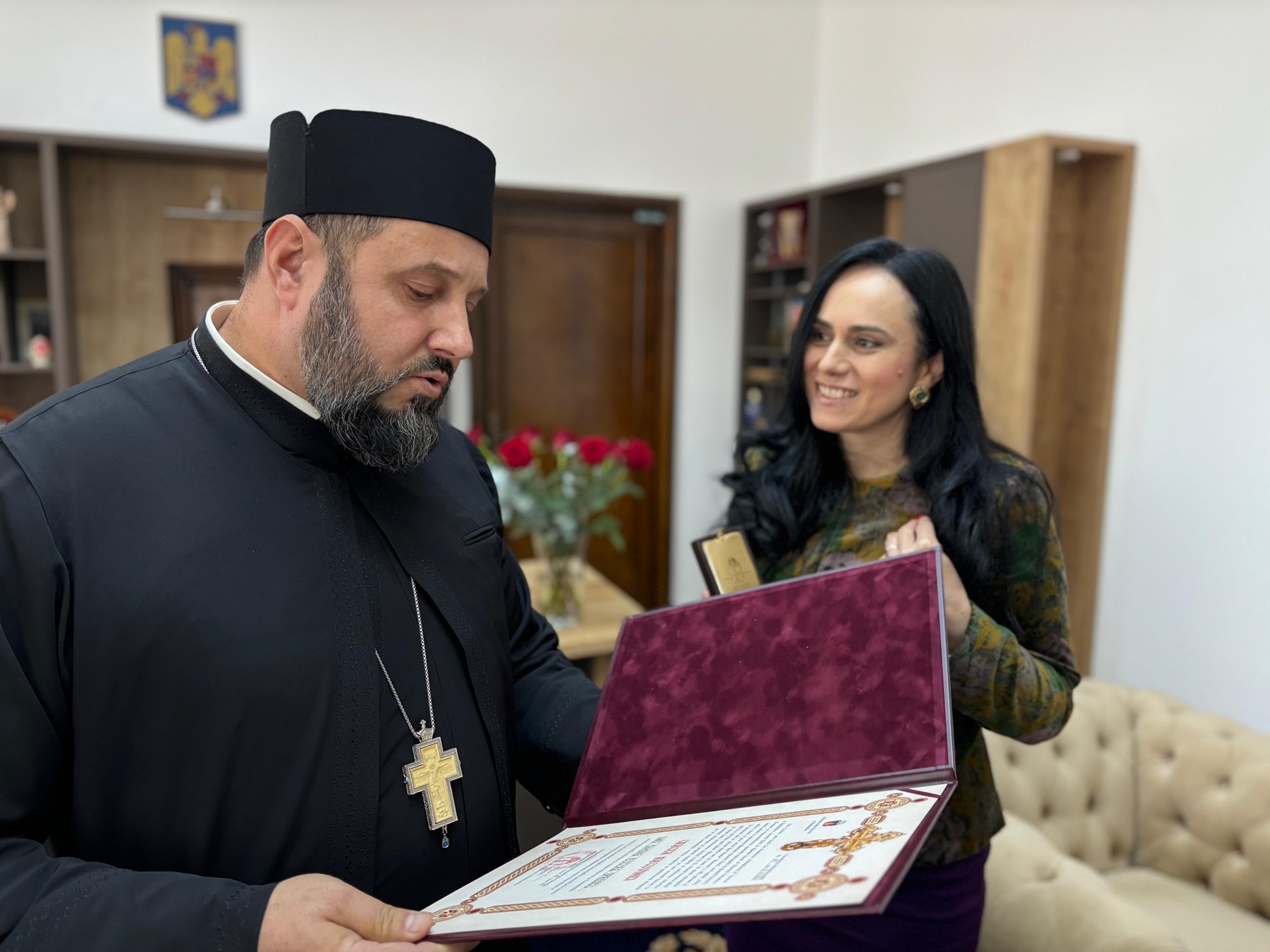 Simona Bucura-Oprescu, ministrul Muncii și Solidarității Sociale a primit astăzi “Crucea Bucovinei”, cea mai înaltă distincție a Arhiepiscopiei Sucevei și Rădăuților.