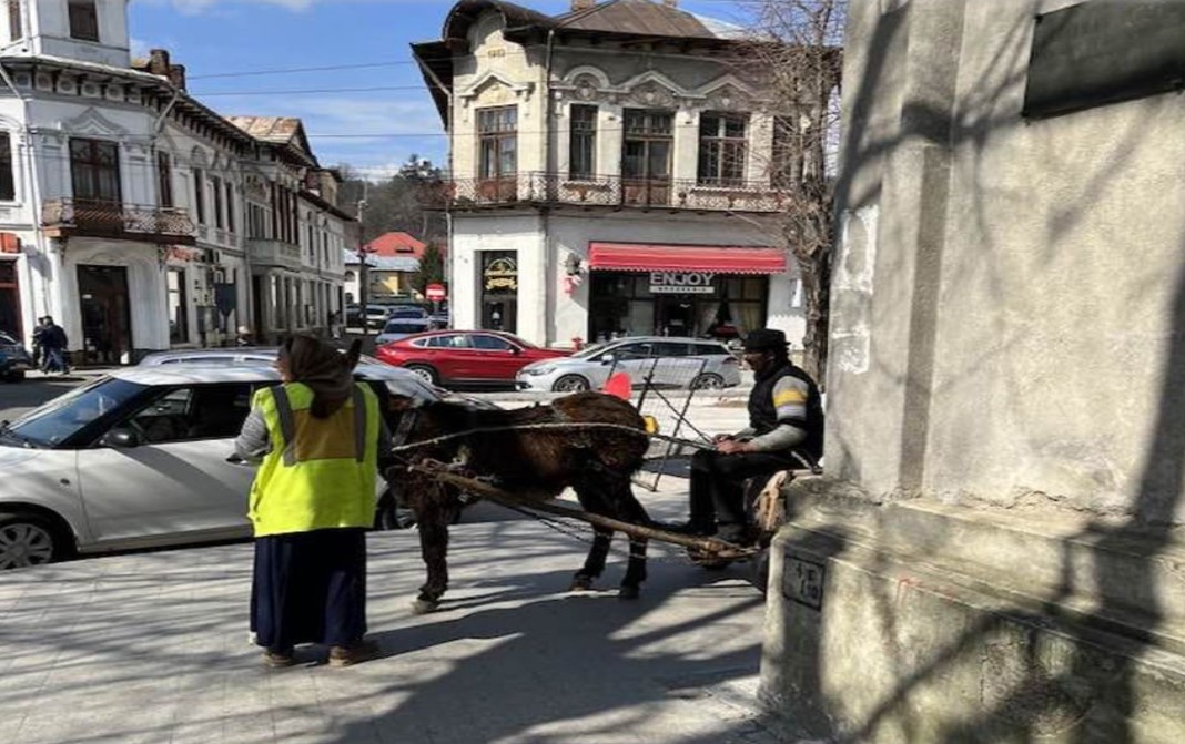 În speranța că nimeni nu îl vede, căruțașul cu femeia lui a ieșit la plimbare. Săracu om, cred că nici nu știe că Bulevardul Pardon este închis. Cine știe din ce parte a județului Argeș o fi…