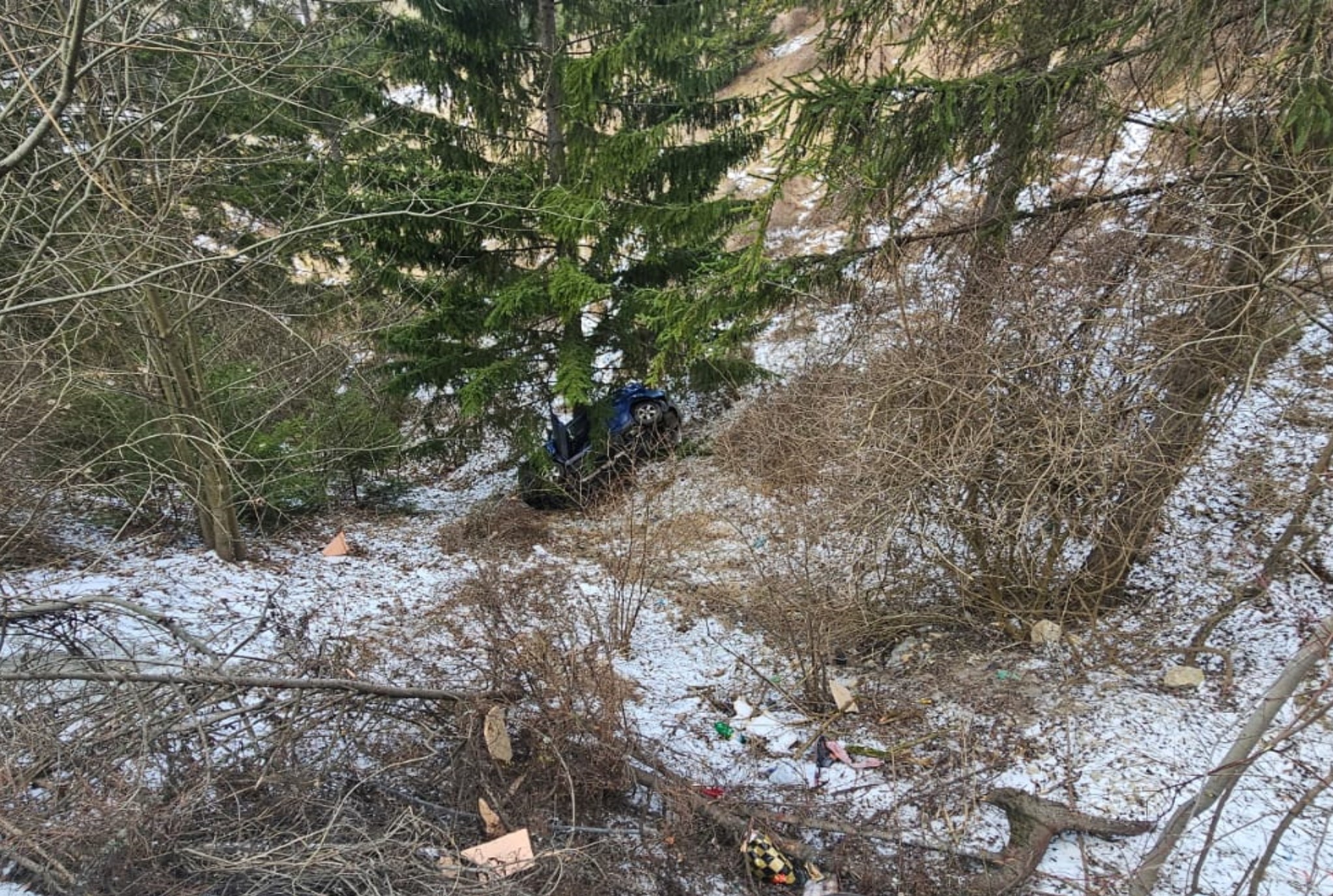 Un accident rutier s-a produs în comuna Dâmbovicioara, unde un autoturism a părăsit partea carosabilă și a căzut într-o râpă de aproximativ 10 metri adâncime.