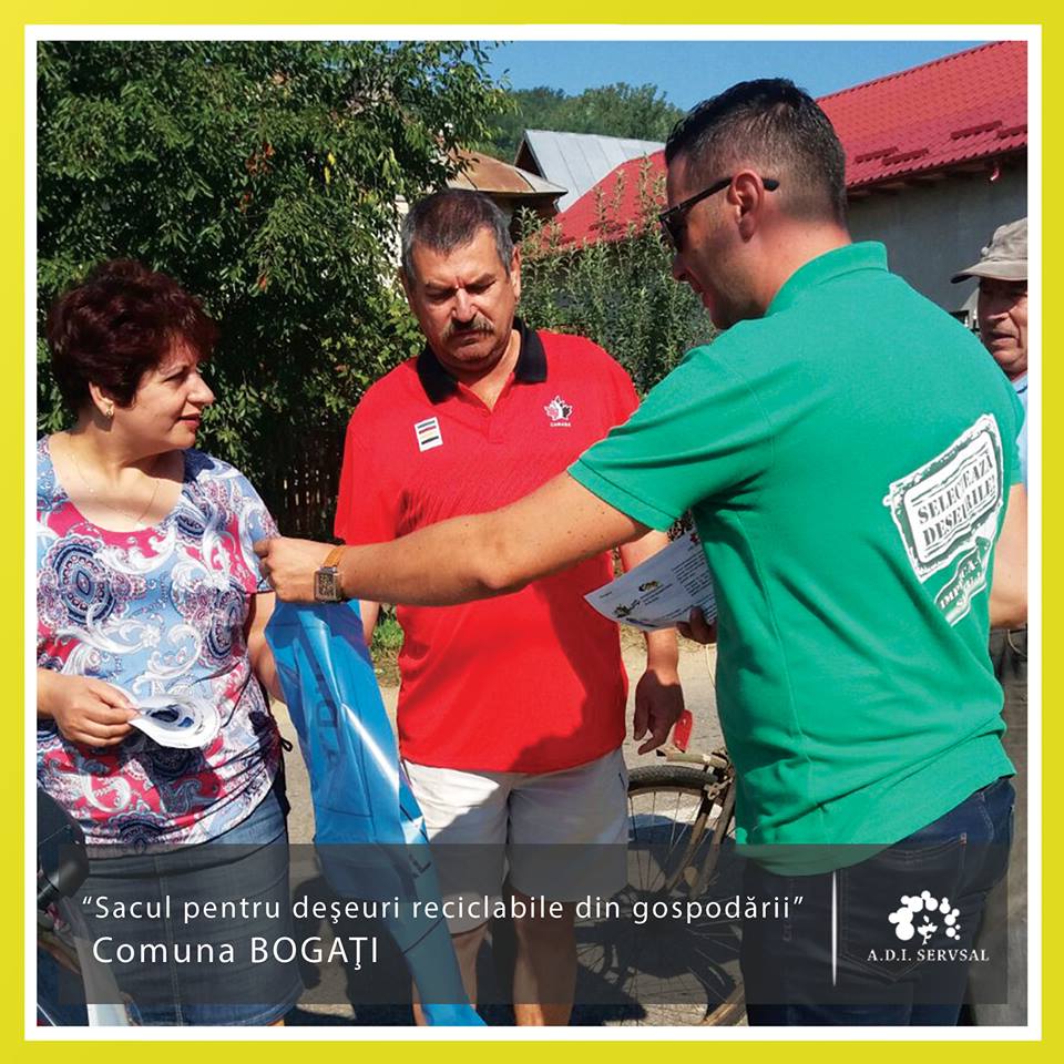 Ecovoluntarii au mers din poartă în poartă şi au distribuit cetăţenilor sacii pentru reciclabile şi pliante cu informaţii despre selectarea deşeurilor în gospodărie, devierea celor biodegradabile în compostoare, precum şi graficele de colectare.