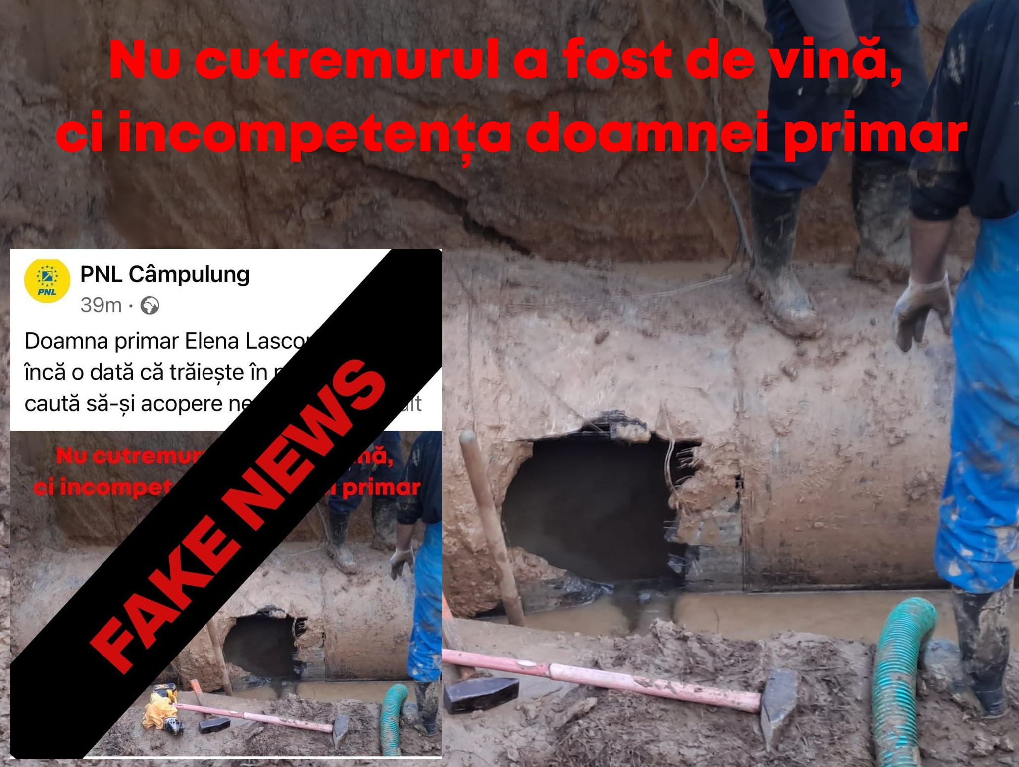 Pe principiul “hoțul strigă hoții”, peneliștii mincinoși acuză primarul și spun că avaria nu are nicio legătură cu seismul. Ipoteza comunicată de administrație, aceea că cea mai probabilă cauză a avariei a fost cutremurul, a fost emisă de specialiști, nu de către primar. Asta au constatat inginerii sosiți la fața locului, nu niște personaje de care nu mai scapă câmpulungenii și care nu ar însemna nimic fără partid.