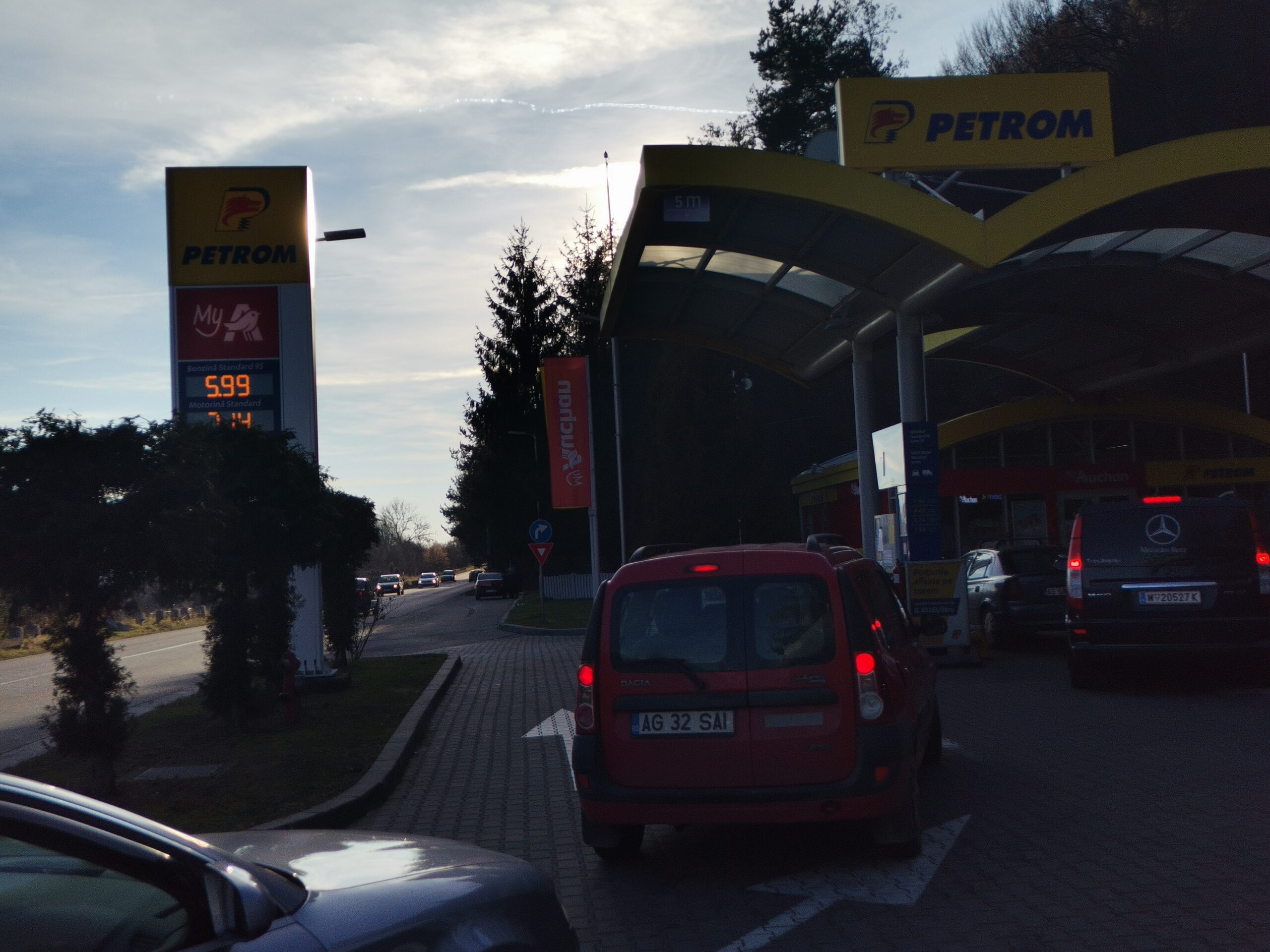 Chiar se stă la coadă, pentru a alimentarea mașinilor cu combustibili. De exemplu astăzi benzina standard 95 este de 5,99 lei per litru, motorina 7,14 lei per litru.