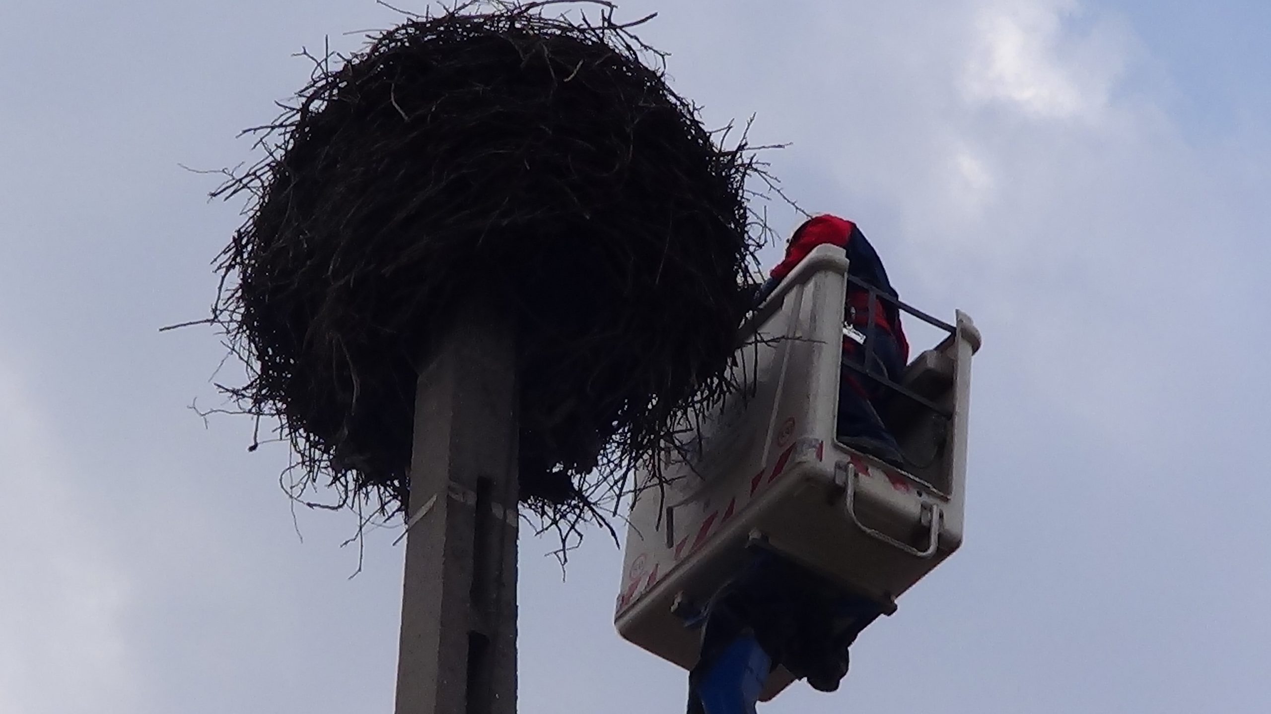 Cuibul berzei a fost stricat, iar pe stâlpul cu pricina a fost montat un con metalic cu ţepuşe, care să împiedice barza să îşi refacă locul.