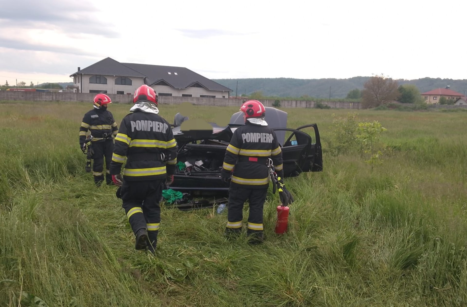 Ca și autoturismul implicat în evenimentul rutier la Mateiaș și acesta de la Mărăcineni s-a răsturnat în afara părții carosabile.