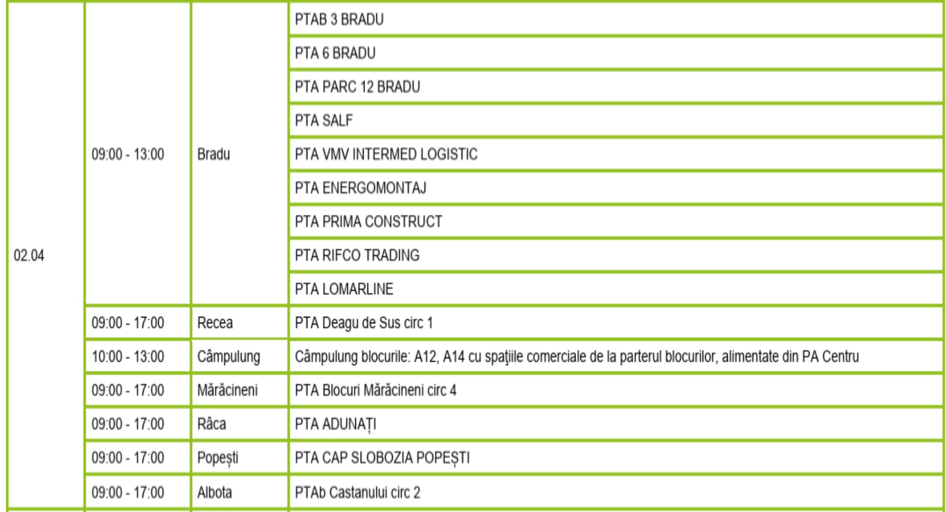 Două zile fără curent electric în Câmpulung Muscel. Anunțul făcut de Distribuție Oltenia. Întreruperile au loc în zilele de 2 și 3 aprilie după graficul din imaginile din conținutul articolului.