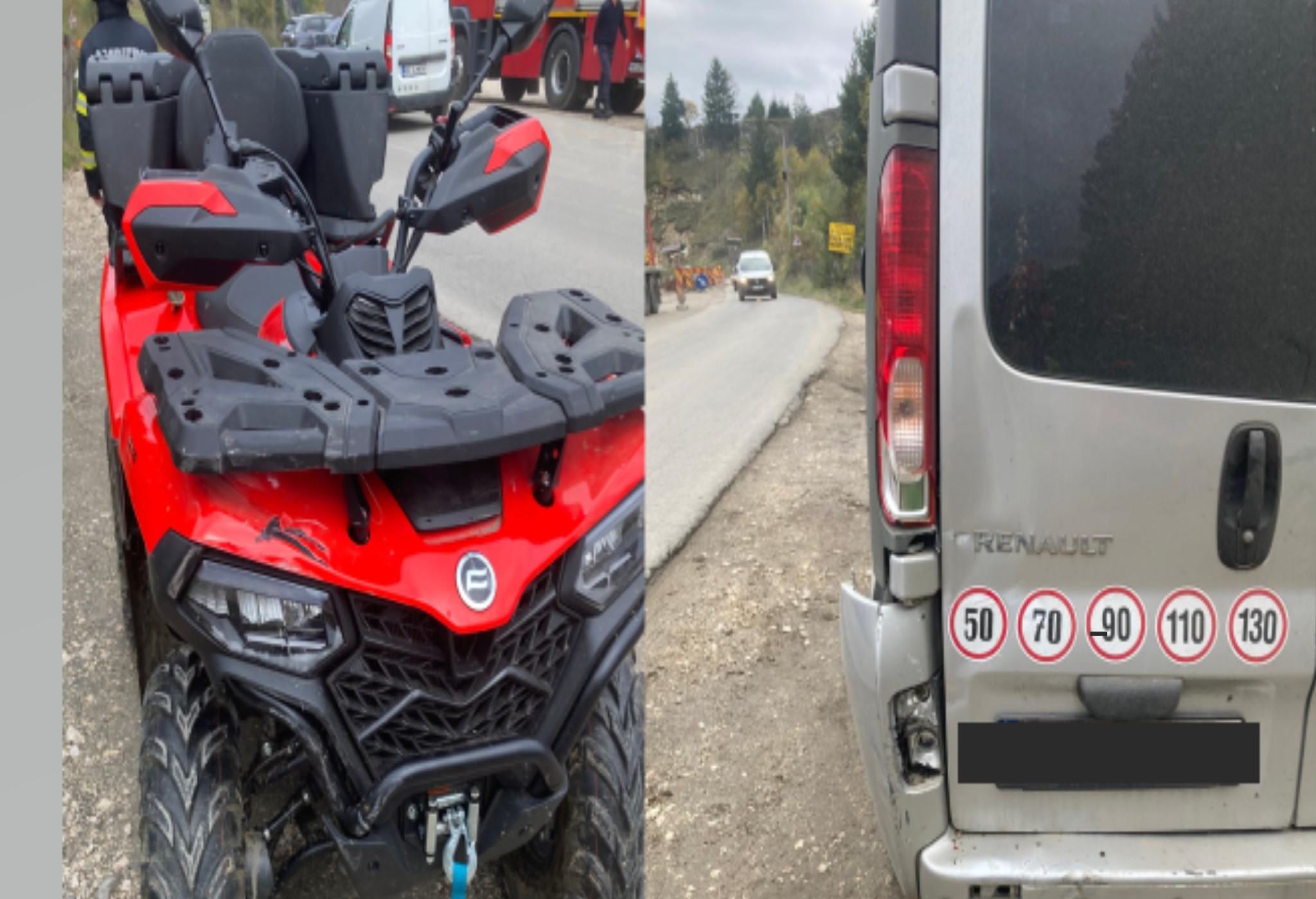 Drum cu multe obstacole. Accident rutier mai puțin obișnuit între un microbuz și un ATV, pe DN 73, spre Brașov.