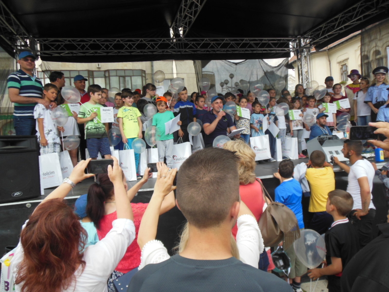 Pe scena din centrul oraşului, alături de prezentatorul evenimentului Ciprian Neculăescu, s-au distrat copiii care au dorit să danseze şi să cânte. Acesta i-a mai impulsionat pe copii să cânte şi să danseze, timp de câteva ore.