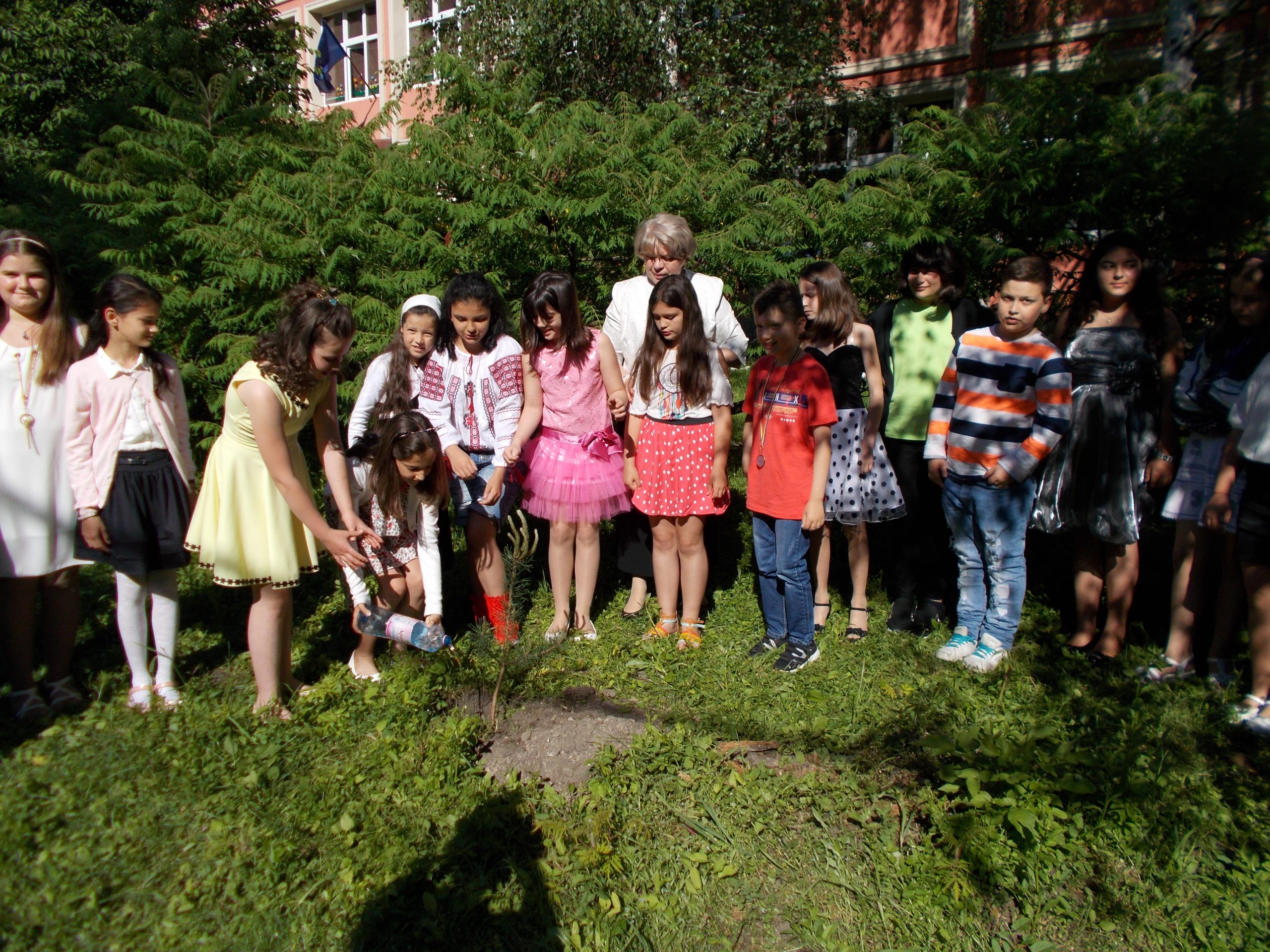 Elevii unei şcoli au plantat un pom în curtea şcolii în semn de preţuire!