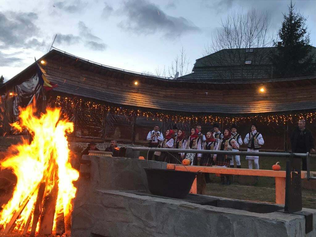 O porțiune din drumul care duce spre restaurant a fost luminată cu făclii în stânga și în dreapta, iar din interior s-au auzit bătăi de tobe, dar și zgomote misterioase ca într-un film de groază.