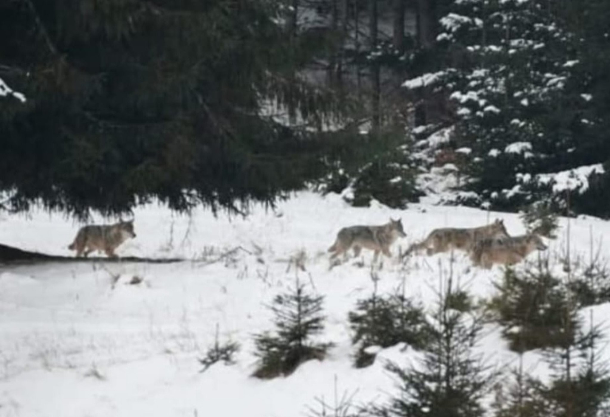 Haită de lupi surprinsă în Ajunul Crăciunului, pe Valea Largă. Imagine rară din zona Rucărului.
