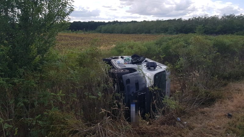 A fost vorba de o autoutilitară, care s-a răsturnat în afara părții carosabile. A avut o explozie la unul dintre cauciucuri.