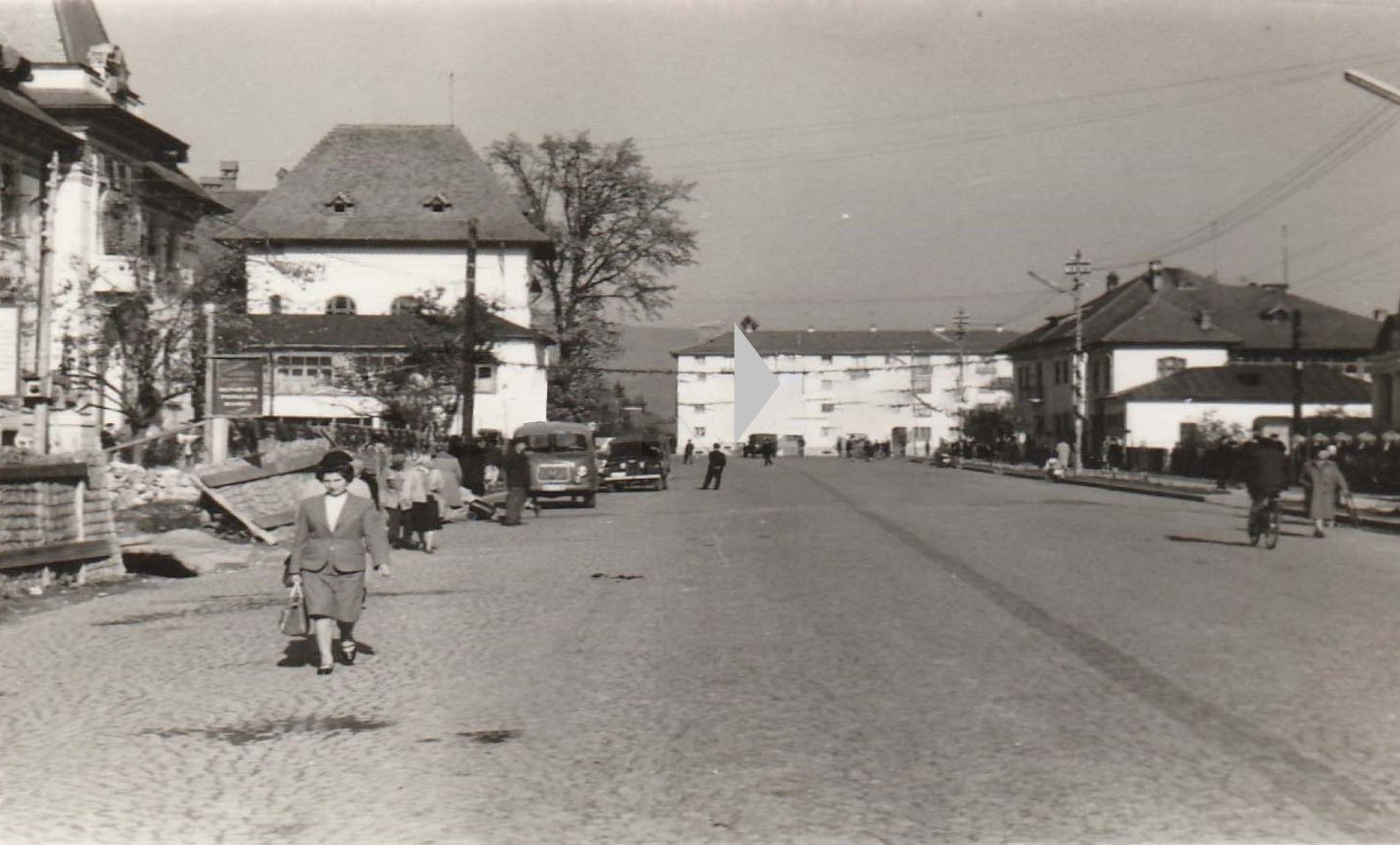 Imagine de colecție. Cum arăta locul unde e acum primăria Câmpulung, prin anii 1960. În fotografia cu valoare documentară apar clădiri dispărute în numele progresului care, în viziunea comunistă, a însemnat construcţia de blocuri.
