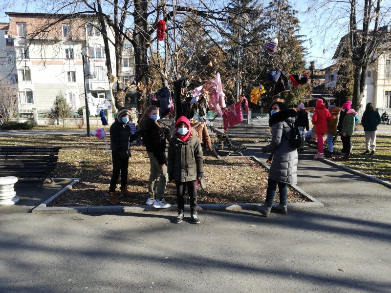 Astfel, geci groase, bluze, pantaloni, căciuli, șepci, fulare, ciorapi sau mănuși au fost puse pe pomi sau pe bănci. Majoritatea hainelor au donate de elevii câmpulungeni pentru persoanele nevoiașe.