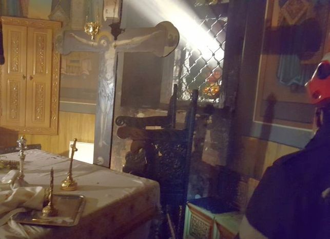 Incendiul a izbucnit în altarul bisericii din Suseni, de la lumânările uitate aprinse. Au ars 5 kg hârtie (cărți bisericești) și materiale textile circa 6 kg.