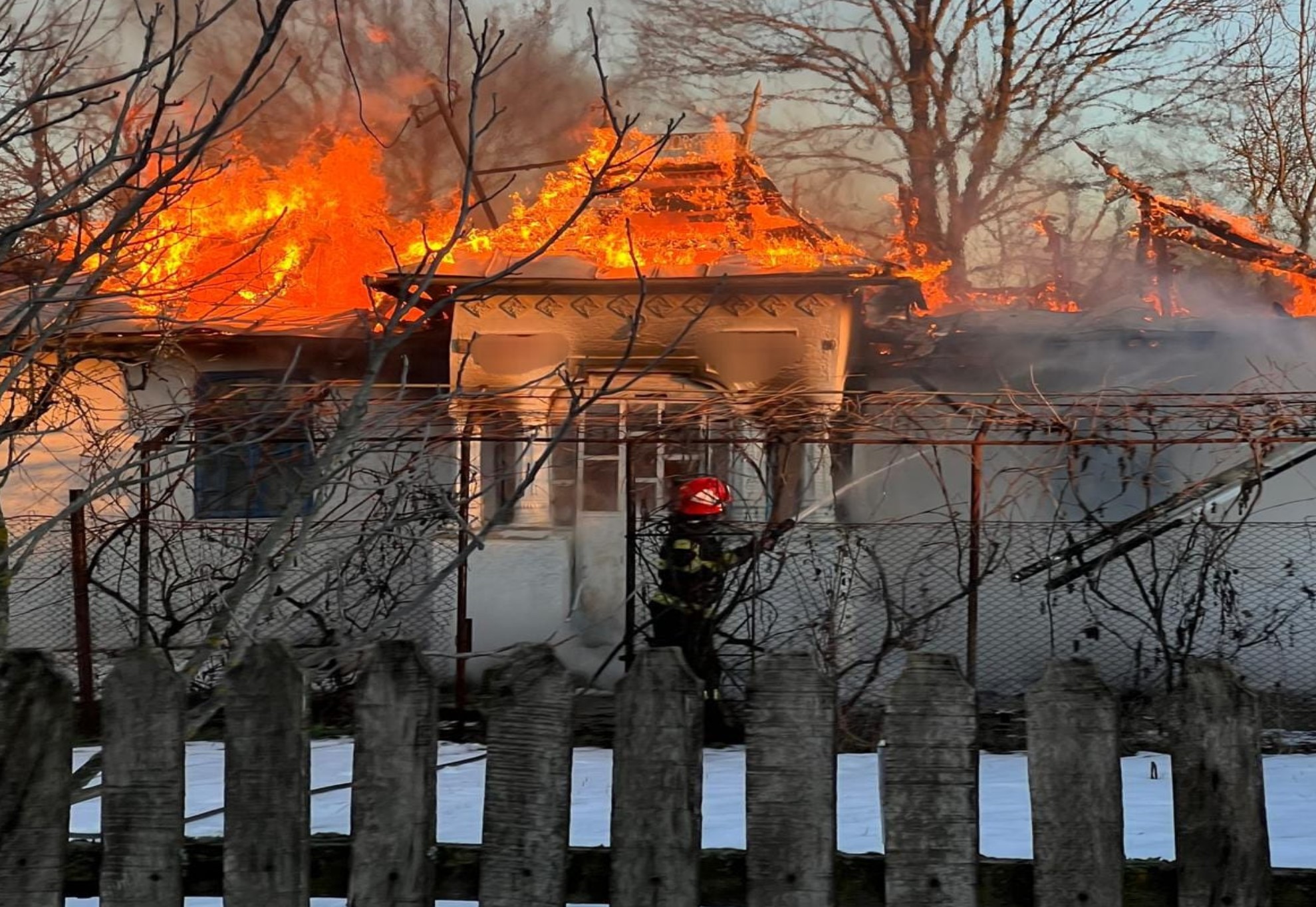 Incendiu puternic într-o gospodărie. Acoperișul unei locuințe, distrus pe 60 mp.