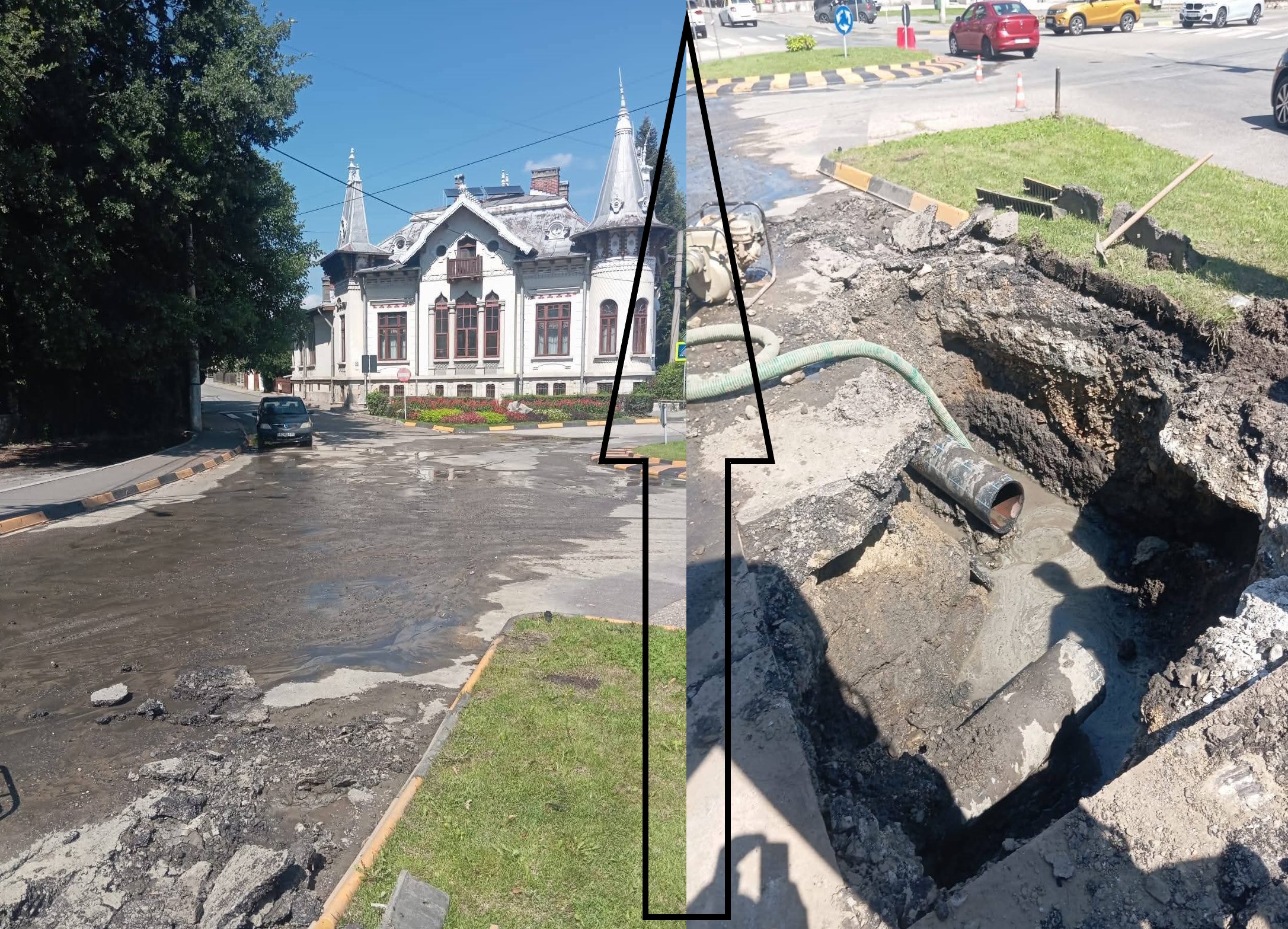 ”E avarie grea. Sapă oamenii ăștia de azi dimineață. S-a rupt conducta veche și am senzația că nu o pot înlocui. E jale pe vale. Conductele astea nu au mai fost înlocuite de la data când au fost făcute lucrările de aducțiune a apei și cele de canalizare. Din 1960, Dumnezeu știe.