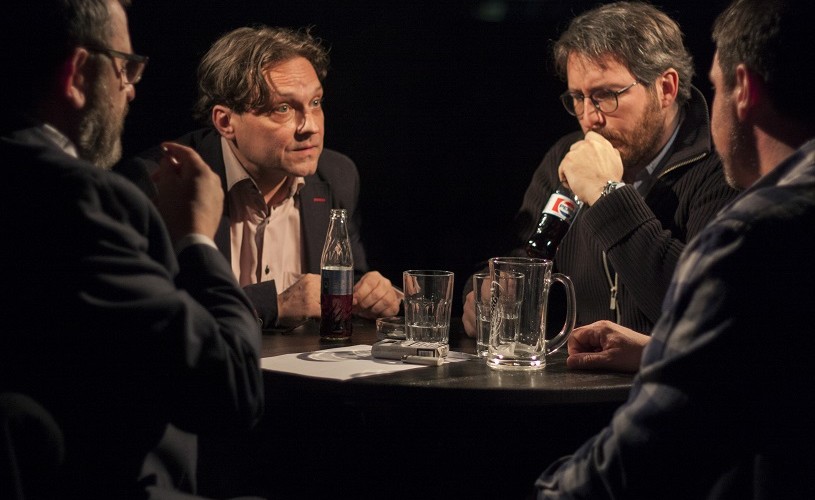 Povestea este incitantă și tensionată, relevând cum doi frați se întâlnesc întâmplător într-un bar din centrul capitalei. Fiecare dintre cei doi se află acolo pentru a rezolva aceeași problemă – moștenirea tatălui (aflat încă în viață). Cel mic își dă întâlnire cu directorul spitalului unde este internat tatăl său. Cel mare, vădit preocupat de starea critică a bătrânului, vine să discute cu un preot. În același timp și în același loc. Un spectacol în care dezbaterea dintre religie și ateism are un final neașteptat.