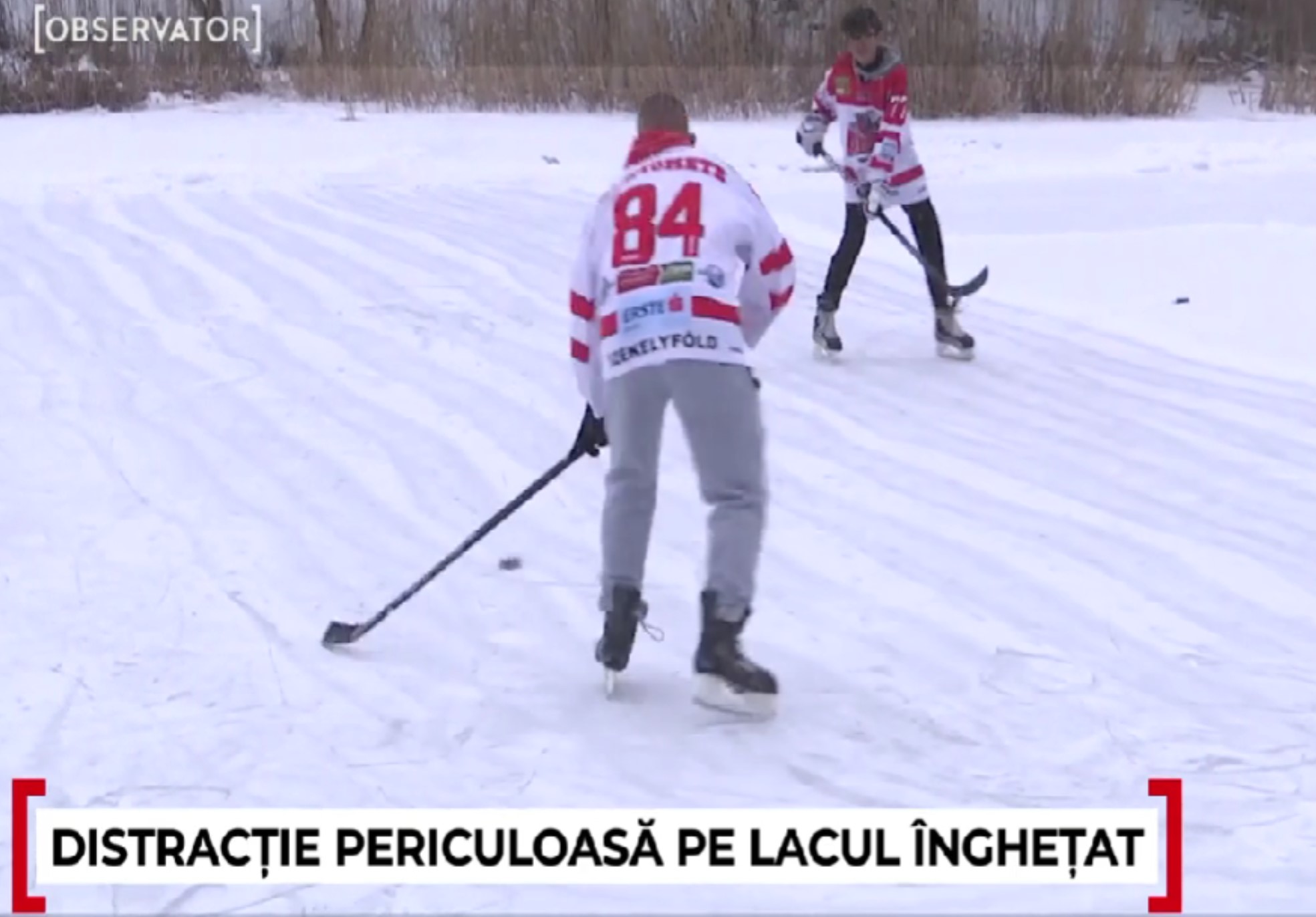 „Sunt zone în lacul ăsta unde izvorăşte apa. Şi e posibil ca acolo să nu fie aşa groasă. Sunt copii care joacă hochei aici între ei. 10-12 întotdeauna sunt”, a spus un localnic.